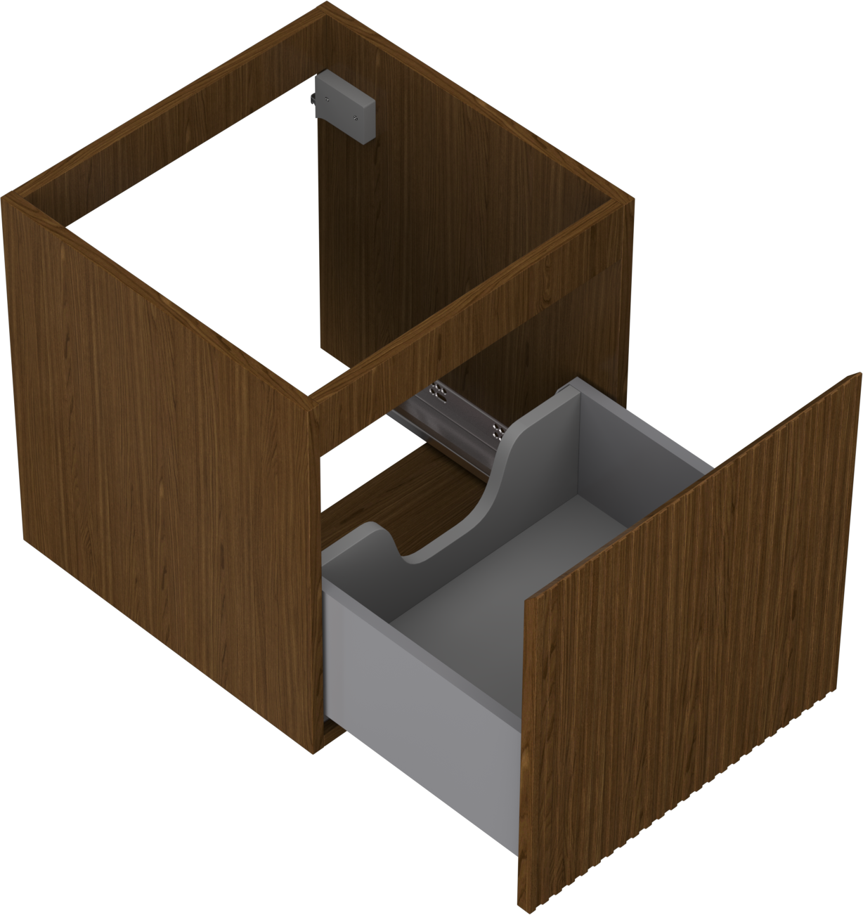 A fiókban lévő kivágás úgy van kialakítva, hogy befogadja a mosdó telepítéseknél szükséges szifont. Ennek köszönhetően a bútor teljesen funkcionálisan felszerelhető anélkül, hogy a fiók terének egy részét fel kellene áldozni a telepítés miatt.