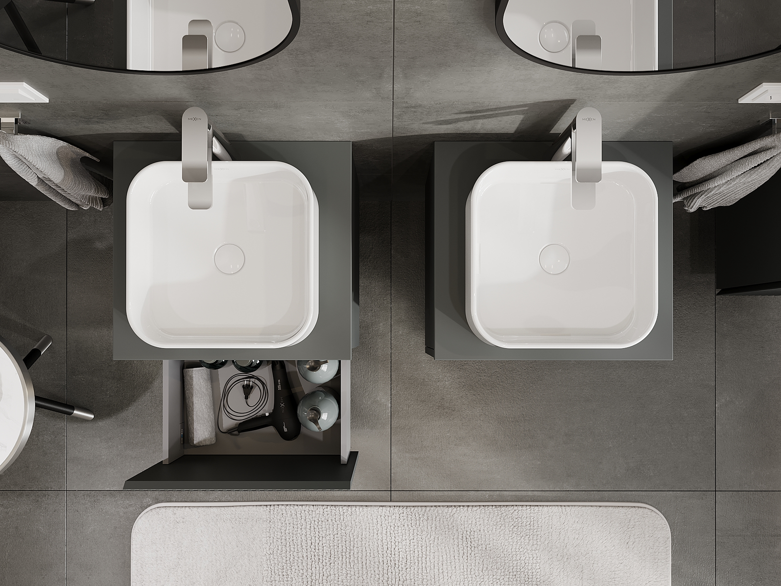 A moduláris fürdőszobabútorainkat különböző színkonfigurációkban lehet kombinálni, lehetővé téve a teljes személyre szabást. Kiválasztható mind az egyes elemek megjelenése, mind pedig funkciói, ami lehetővé teszi a bútorok személyes stílus- és használati preferenciákhoz való igazítását.