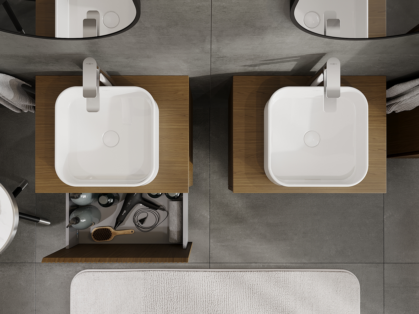 A moduláris fürdőszobabútorainkat különböző színkonfigurációkban lehet kombinálni, lehetővé téve a teljes személyre szabást. Kiválasztható mind az egyes elemek megjelenése, mind pedig funkciói, ami lehetővé teszi a bútorok személyes stílus- és használati preferenciákhoz való igazítását.