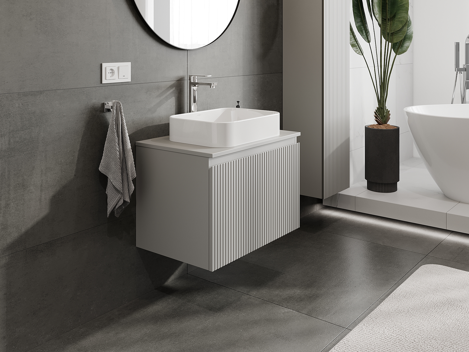 Mexen Rivel fürdőszobai szekrény mosdó alá 70 cm, 1 fiók, bordázott, szürke matt - 91A20-07047-1-BF62