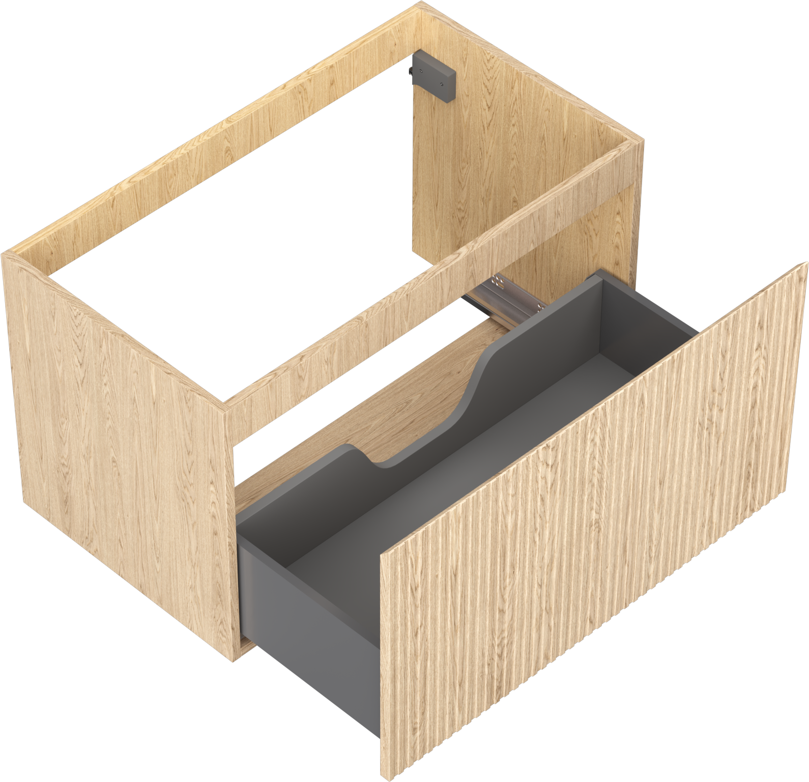 A fiókban lévő kivágás úgy van kialakítva, hogy befogadja a mosdó telepítéseknél szükséges szifont. Ennek köszönhetően a bútor teljesen funkcionálisan felszerelhető anélkül, hogy a fiók terének egy részét fel kellene áldozni a telepítés miatt.