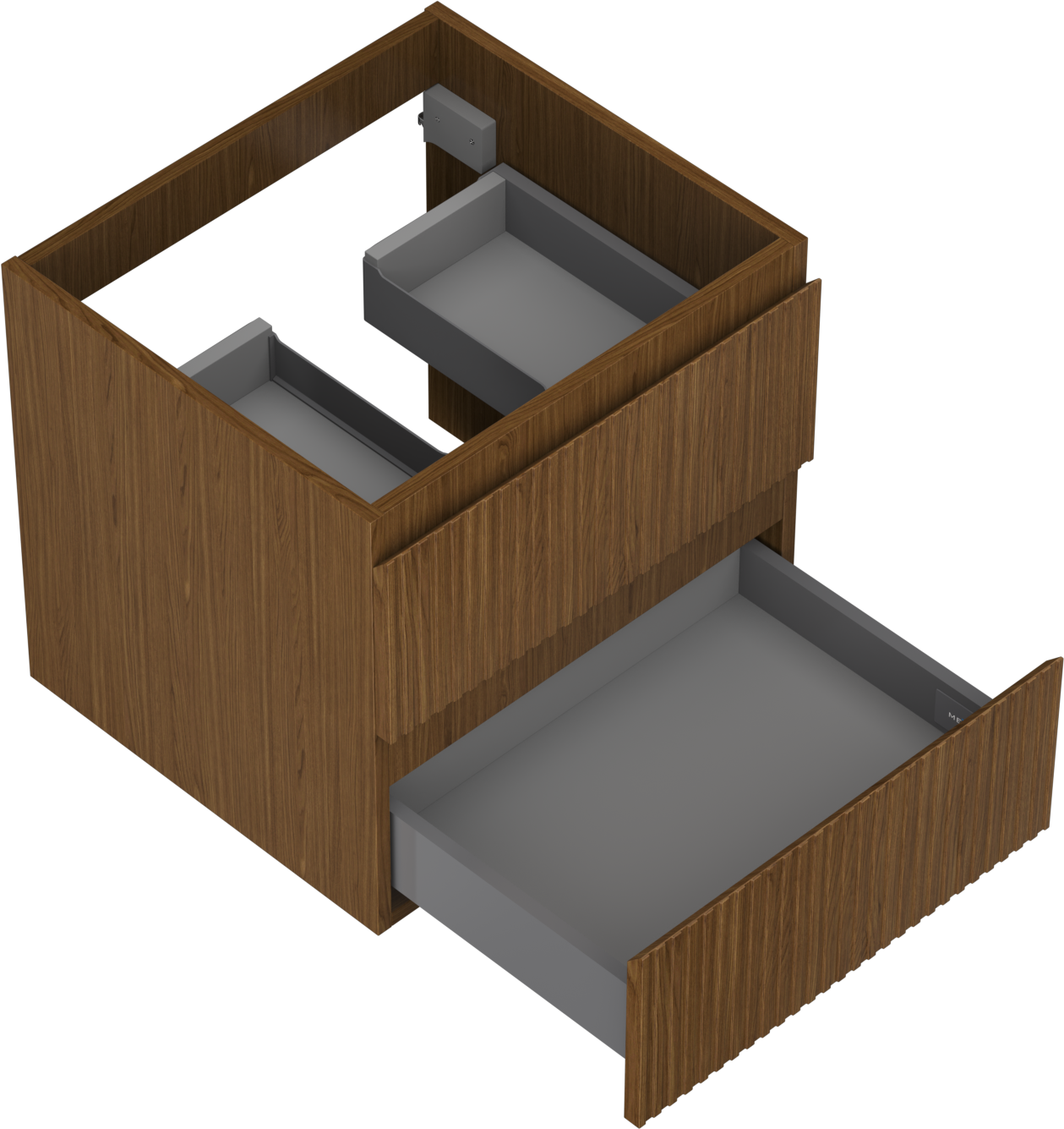 A fiókban lévő kivágás úgy van kialakítva, hogy befogadja a mosdó telepítéseknél szükséges szifont. Ennek köszönhetően a bútor teljesen funkcionálisan felszerelhető anélkül, hogy a fiók terének egy részét fel kellene áldozni a telepítés miatt.