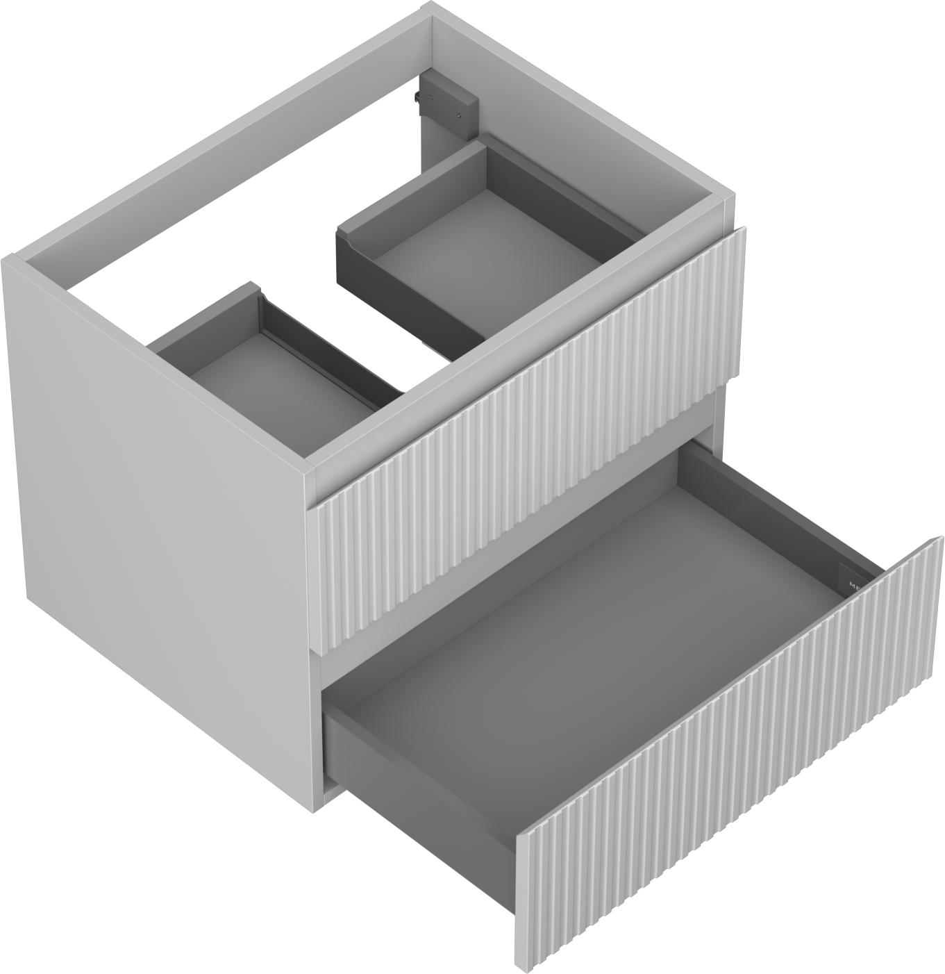 A fiókban lévő kivágás úgy van kialakítva, hogy befogadja a mosdó telepítéseknél szükséges szifont. Ennek köszönhetően a bútor teljesen funkcionálisan felszerelhető anélkül, hogy a fiók terének egy részét fel kellene áldozni a telepítés miatt.
