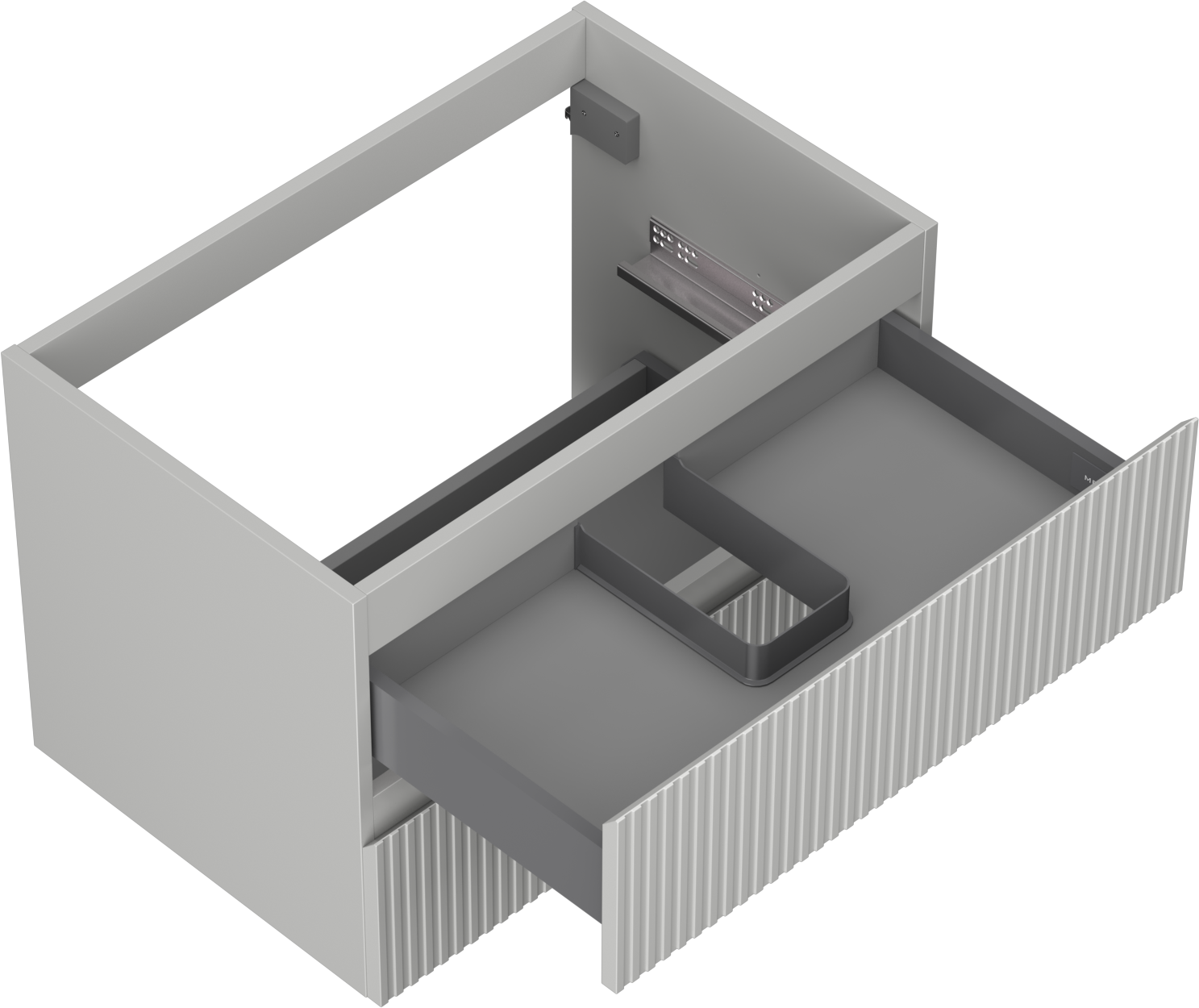 A fiókban lévő kivágás úgy van kialakítva, hogy befogadja a mosdó telepítéseknél szükséges szifont. Ennek köszönhetően a bútor teljesen funkcionálisan felszerelhető anélkül, hogy a fiók terének egy részét fel kellene áldozni a telepítés miatt.