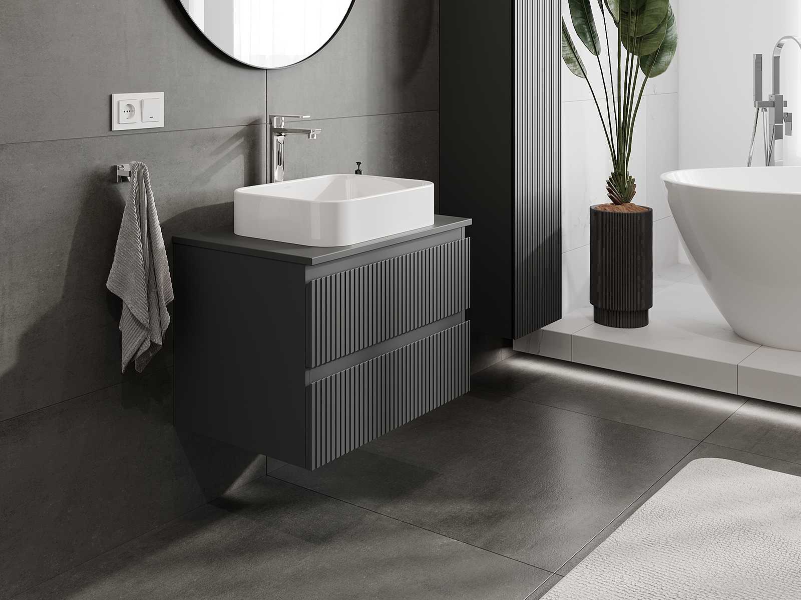 A moduláris fürdőszobabútorainkat különböző színkonfigurációkban lehet kombinálni, lehetővé téve a teljes személyre szabást. Kiválasztható mind az egyes elemek megjelenése, mind pedig funkciói, ami lehetővé teszi a bútorok személyes stílus- és használati preferenciákhoz való igazítását.