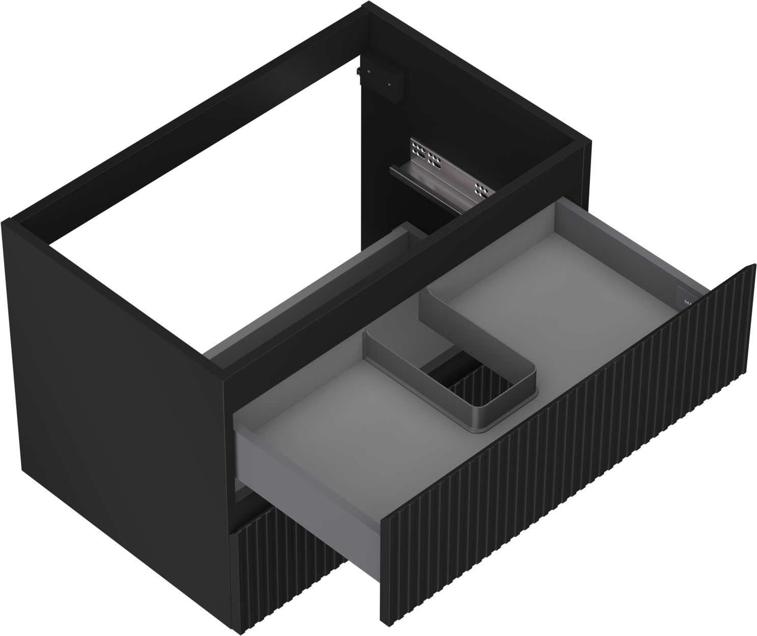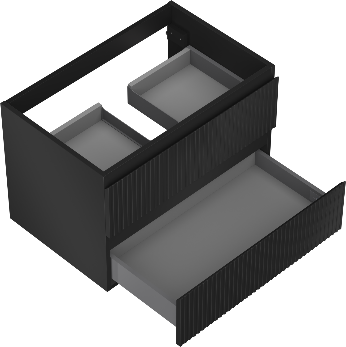 A fiókban lévő kivágás úgy van kialakítva, hogy befogadja a mosdó telepítéseknél szükséges szifont. Ennek köszönhetően a bútor teljesen funkcionálisan felszerelhető anélkül, hogy a fiók terének egy részét fel kellene áldozni a telepítés miatt.