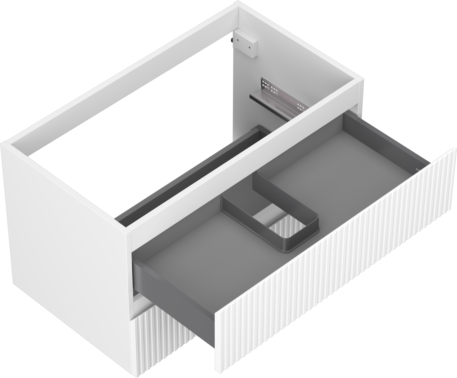 A fiókban lévő kivágás úgy van kialakítva, hogy befogadja a mosdó telepítéseknél szükséges szifont. Ennek köszönhetően a bútor teljesen funkcionálisan felszerelhető anélkül, hogy a fiók terének egy részét fel kellene áldozni a telepítés miatt.
