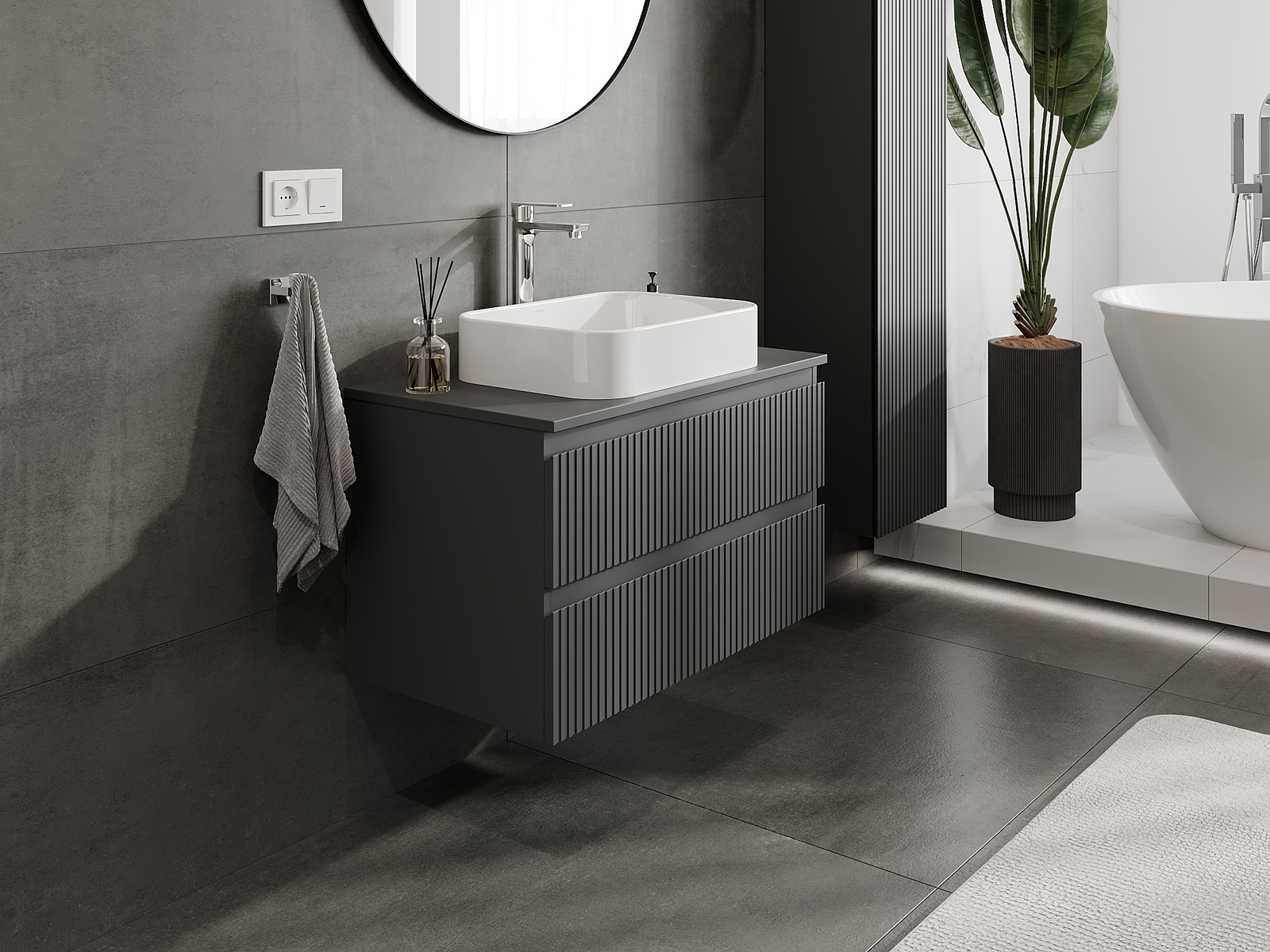 A magas minőségű lakkal bevont lemez kiváló választás a fürdőszobába, elegáns megjelenést biztosít, valamint nagy ellenállást a nedvesség és karcolások hatásának. A magas minőségű lakk védi a munkalap felületét, biztosítva annak hosszú távú tartósságát, esztétikumát és könnyű karbantartását.