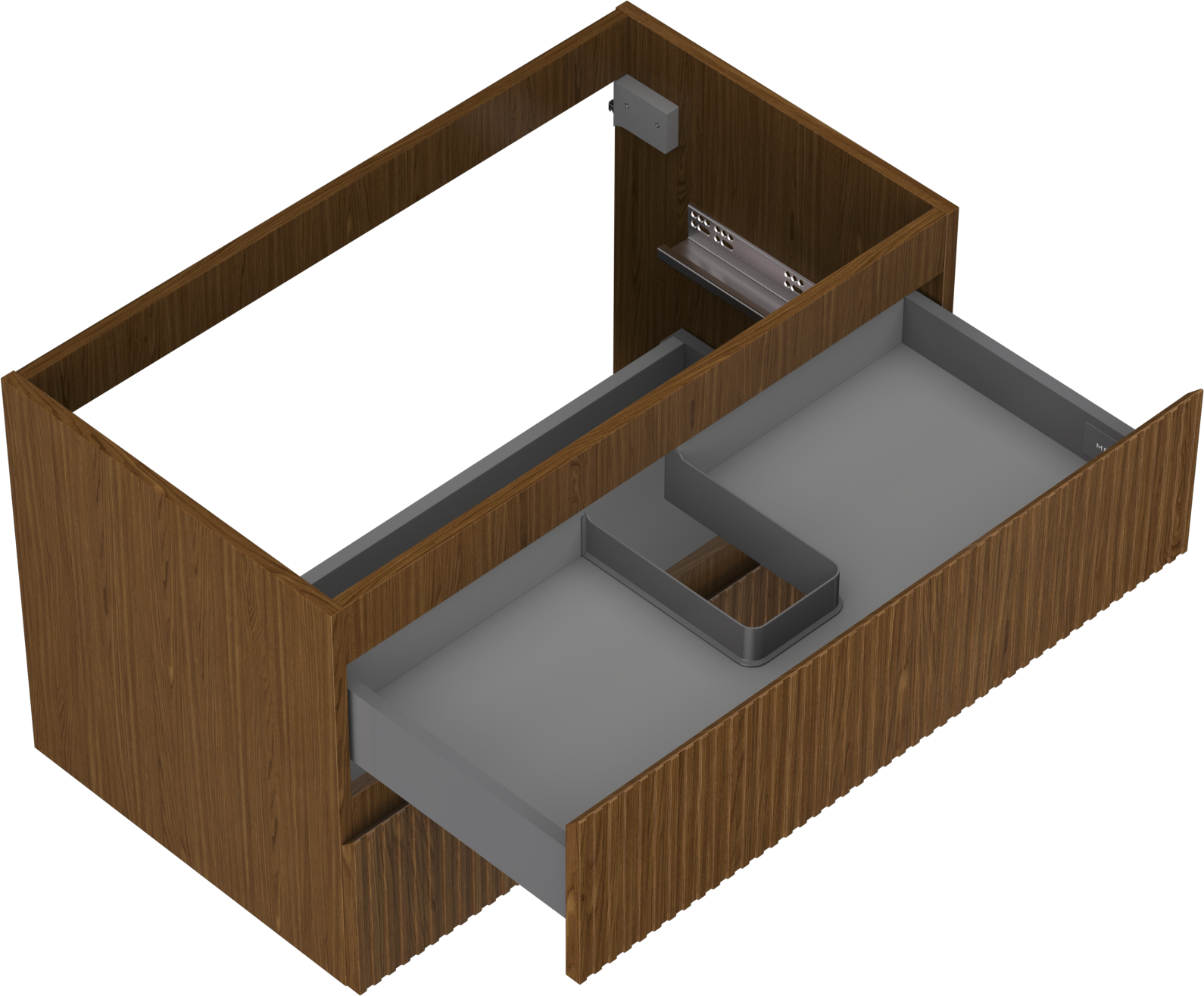 A fiókban lévő kivágás úgy van kialakítva, hogy befogadja a mosdó telepítéseknél szükséges szifont. Ennek köszönhetően a bútor teljesen funkcionálisan felszerelhető anélkül, hogy a fiók terének egy részét fel kellene áldozni a telepítés miatt.