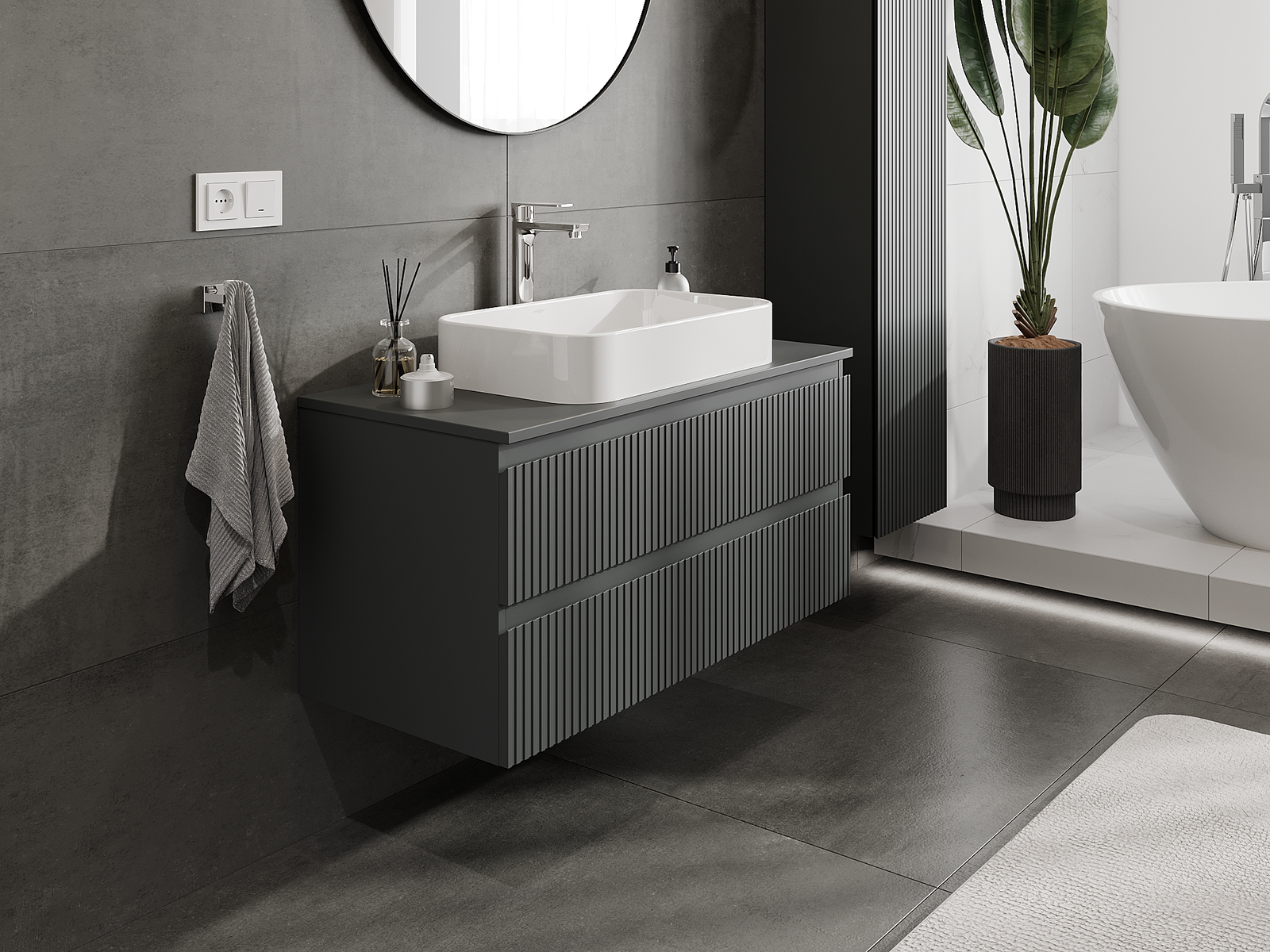 A moduláris fürdőszobabútorainkat különböző színkonfigurációkban lehet kombinálni, lehetővé téve a teljes személyre szabást. Kiválasztható mind az egyes elemek megjelenése, mind pedig funkciói, ami lehetővé teszi a bútorok személyes stílus- és használati preferenciákhoz való igazítását.