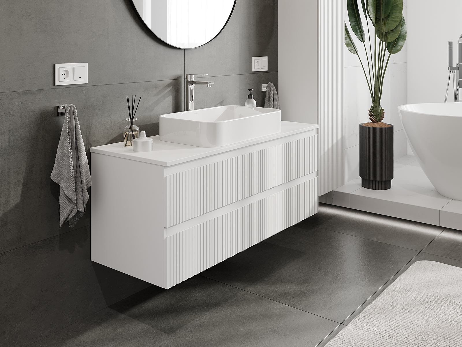 A fiókban lévő kivágás úgy van kialakítva, hogy befogadja a mosdó telepítéseknél szükséges szifont. Ennek köszönhetően a bútor teljesen funkcionálisan felszerelhető anélkül, hogy a fiók terének egy részét fel kellene áldozni a telepítés miatt.