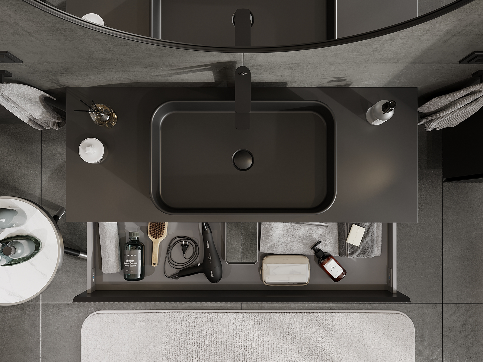 A moduláris fürdőszobabútorainkat különböző színkonfigurációkban lehet kombinálni, lehetővé téve a teljes személyre szabást. Kiválasztható mind az egyes elemek megjelenése, mind pedig funkciói, ami lehetővé teszi a bútorok személyes stílus- és használati preferenciákhoz való igazítását.