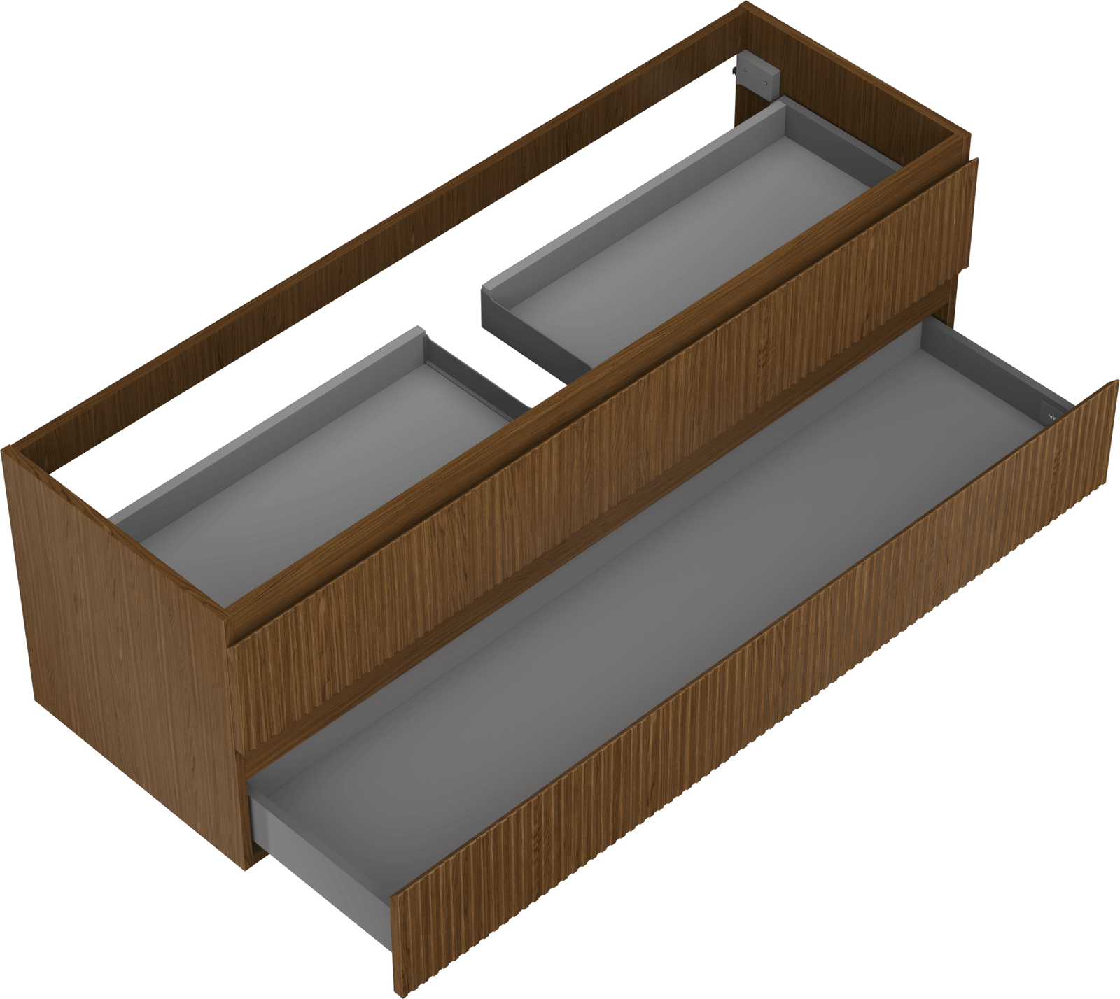 Mexen Rivel 140 cm-es fürdőszobai mosdószekrény, 2 fiókos, bordázott, dió - 91A20-14047-2-BFF86