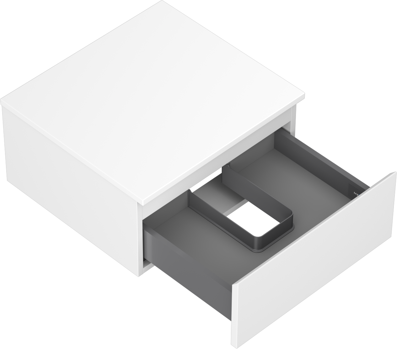 A fiókban lévő kivágás úgy van kialakítva, hogy befogadja a mosdó telepítéseknél szükséges szifont. Ennek köszönhetően a bútor teljesen funkcionálisan felszerelhető anélkül, hogy a fiók terének egy részét fel kellene áldozni a telepítés miatt.