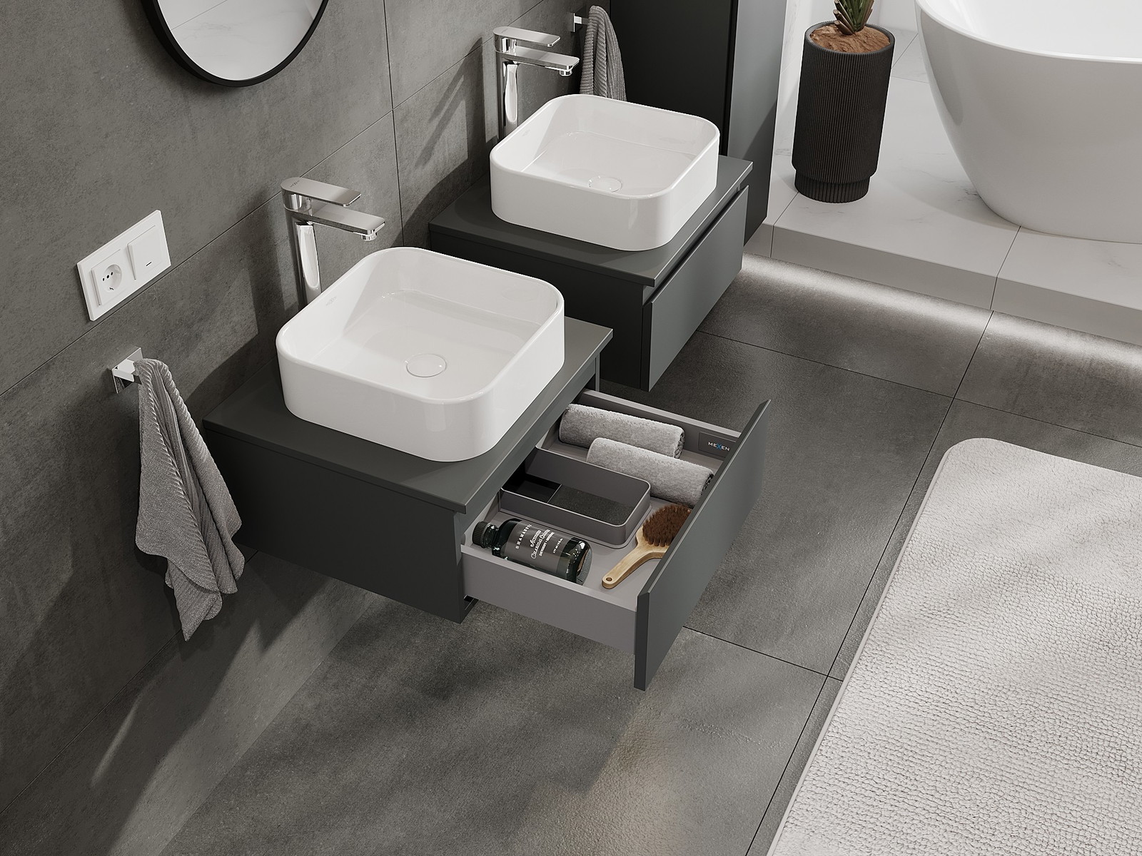 Mexen Orio 50 cm-es mosdószekrény munkalappal, 1 fiók, matt grafit - 91A10-05023-1-BFC66
