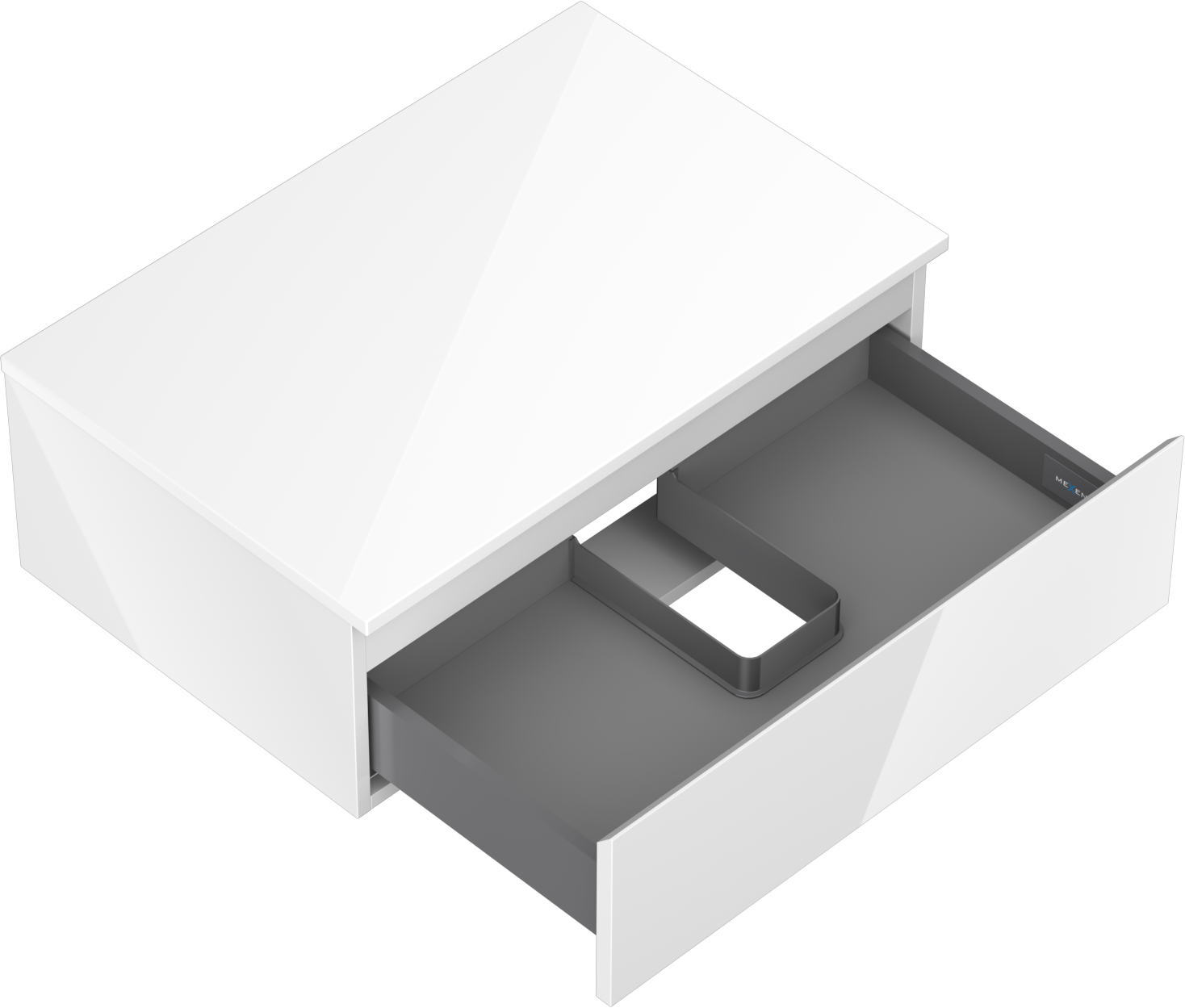 A fiókban lévő kivágás úgy van kialakítva, hogy befogadja a mosdó telepítéseknél szükséges szifont. Ennek köszönhetően a bútor teljesen funkcionálisan felszerelhető anélkül, hogy a fiók terének egy részét fel kellene áldozni a telepítés miatt.