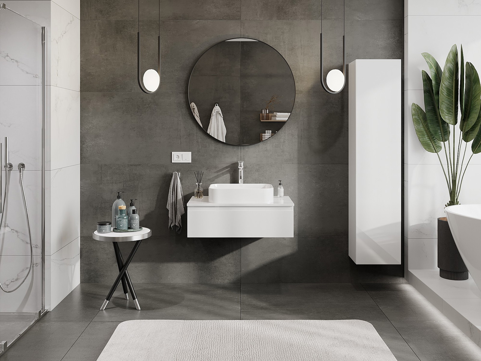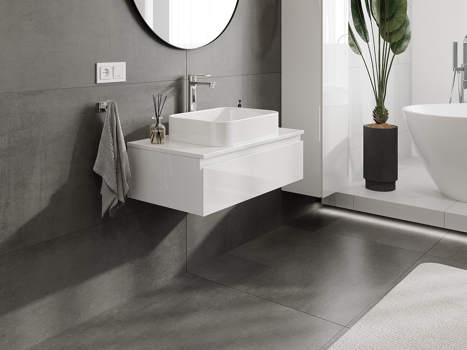 A magas minőségű lakkal bevont lemez kiváló választás a fürdőszobába, elegáns megjelenést biztosít, valamint nagy ellenállást a nedvesség és karcolások hatásának. A magas minőségű lakk védi a munkalap felületét, biztosítva annak hosszú távú tartósságát, esztétikumát és könnyű karbantartását.
