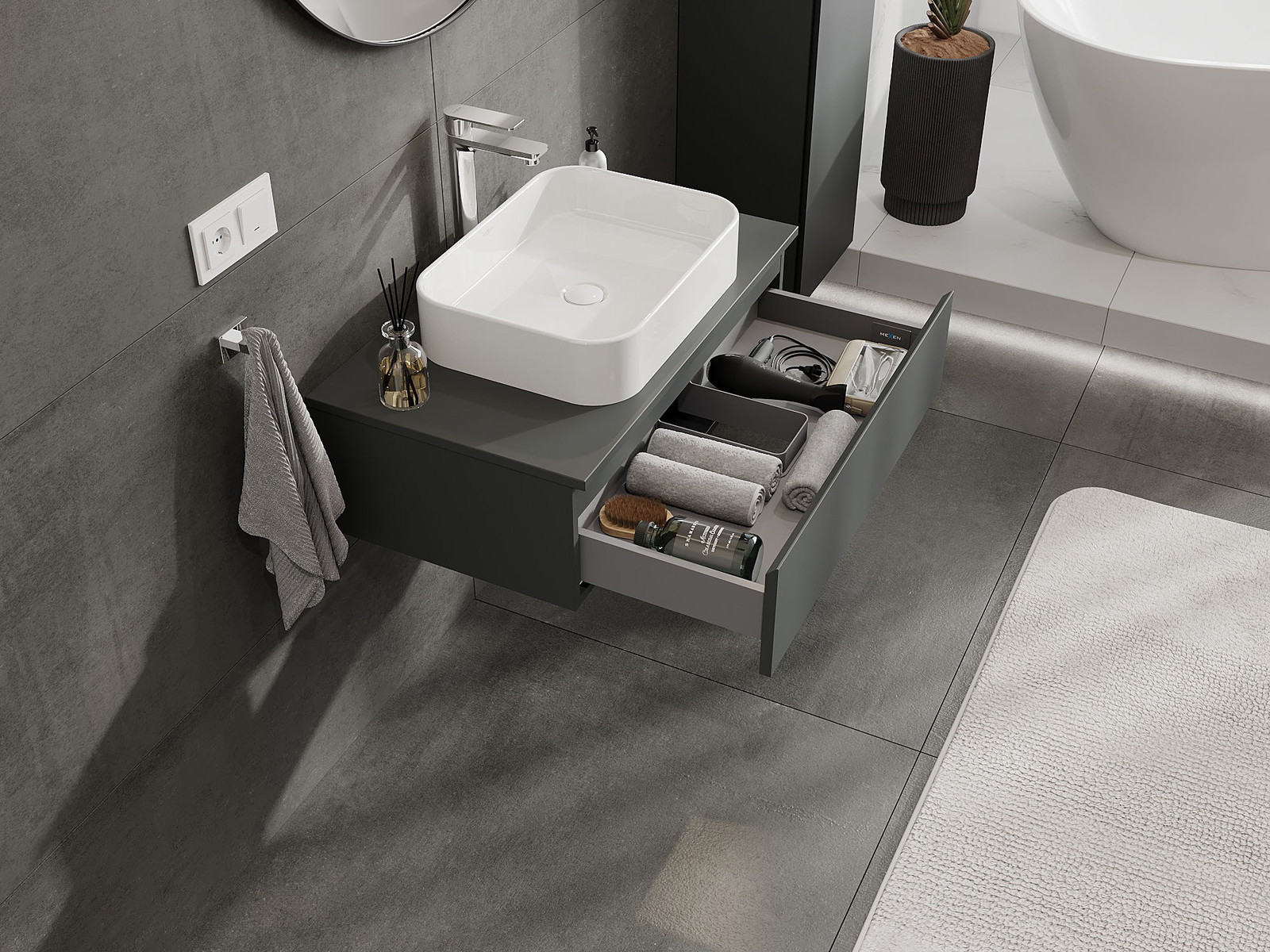 A szilárd anyagoknak, a precíz kivitelnek és a korszerű technológiai megoldásoknak köszönhetően a termék kényelmes használatot, nedvesség- és hőmérséklet-változásokkal szembeni ellenállást, valamint elegáns megjelenést biztosít, amely illeszkedik a különböző fürdőszobai stílusokhoz.