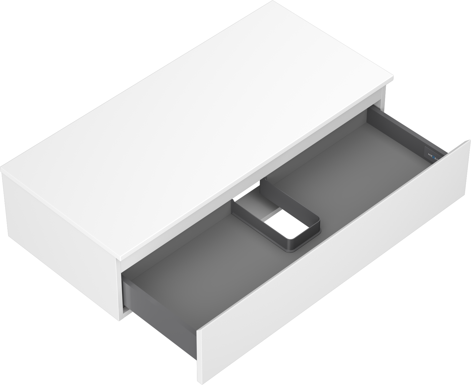 A fiókban lévő kivágás úgy van kialakítva, hogy befogadja a mosdó telepítéseknél szükséges szifont. Ennek köszönhetően a bútor teljesen funkcionálisan felszerelhető anélkül, hogy a fiók terének egy részét fel kellene áldozni a telepítés miatt.