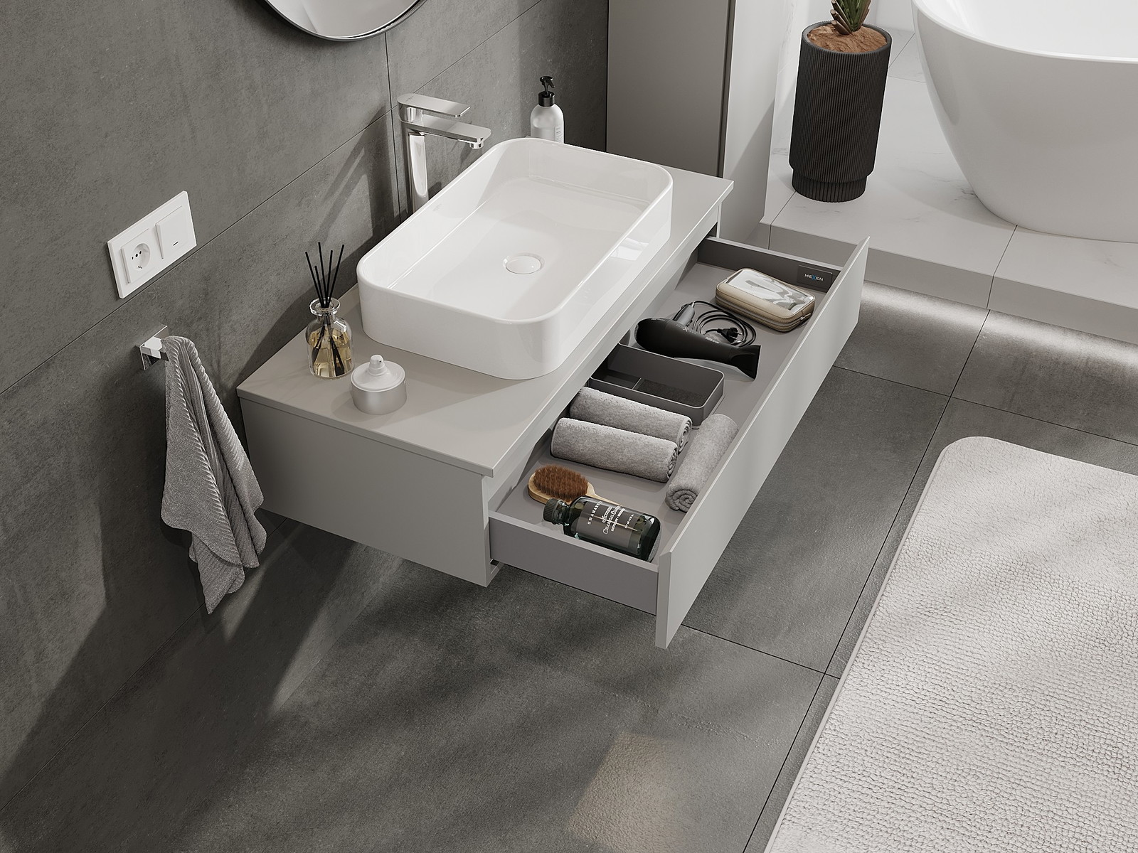 A szilárd anyagoknak, a precíz kivitelnek és a korszerű technológiai megoldásoknak köszönhetően a termék kényelmes használatot, nedvesség- és hőmérséklet-változásokkal szembeni ellenállást, valamint elegáns megjelenést biztosít, amely illeszkedik a különböző fürdőszobai stílusokhoz.