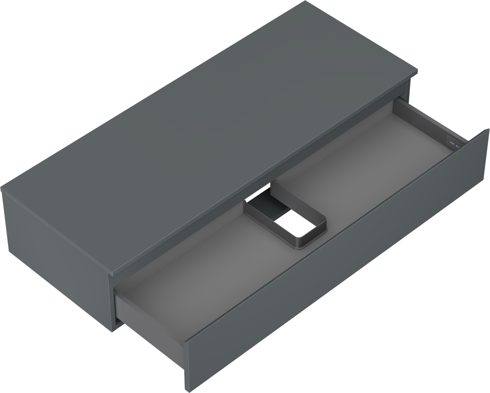 A fiókban lévő kivágás úgy van kialakítva, hogy befogadja a mosdó telepítéseknél szükséges szifont. Ennek köszönhetően a bútor teljesen funkcionálisan felszerelhető anélkül, hogy a fiók terének egy részét fel kellene áldozni a telepítés miatt.