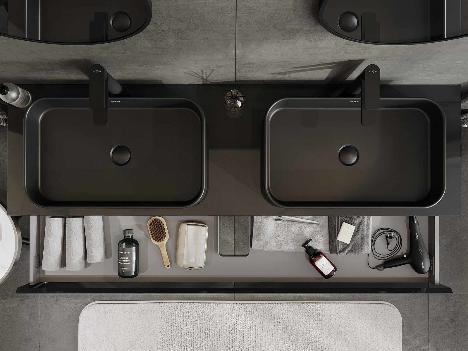 A fiókban lévő kivágás úgy van kialakítva, hogy befogadja a mosdó telepítéseknél szükséges szifont. Ennek köszönhetően a bútor teljesen funkcionálisan felszerelhető anélkül, hogy a fiók terének egy részét fel kellene áldozni a telepítés miatt.