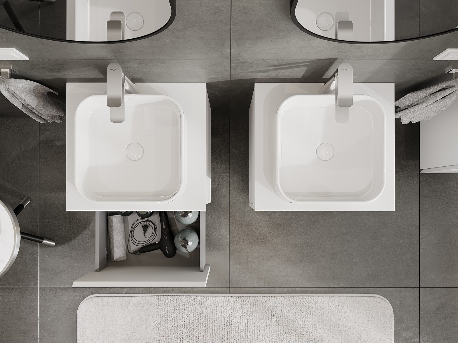 Mexen Orio fürdőszobai szekrény mosdó alatti 50 cm-es pulttal, 1 fiók, matt fehér - 91A10-05047-1-BFC01