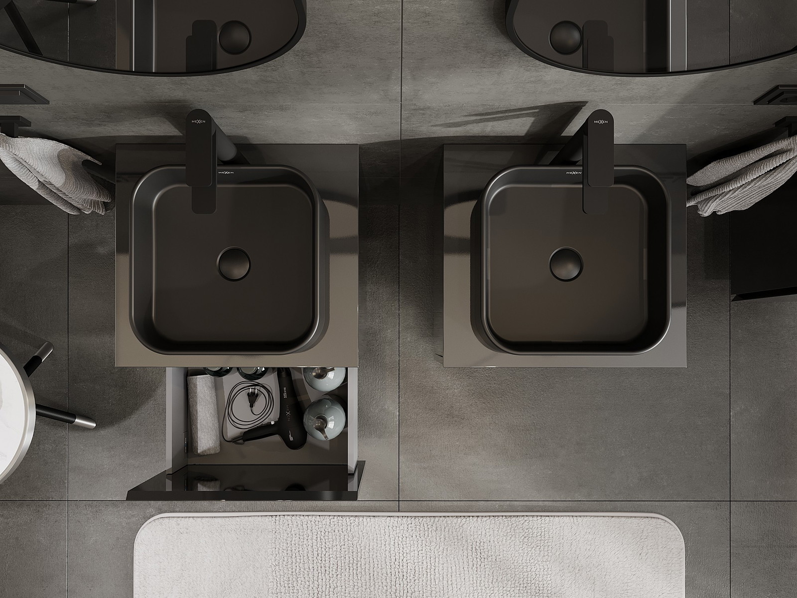 Mexen Orio 50 cm-es fürdőszobai mosdószekrény lappal, 1 fiók, fekete fényes - 91A10-05047-1-BFC70