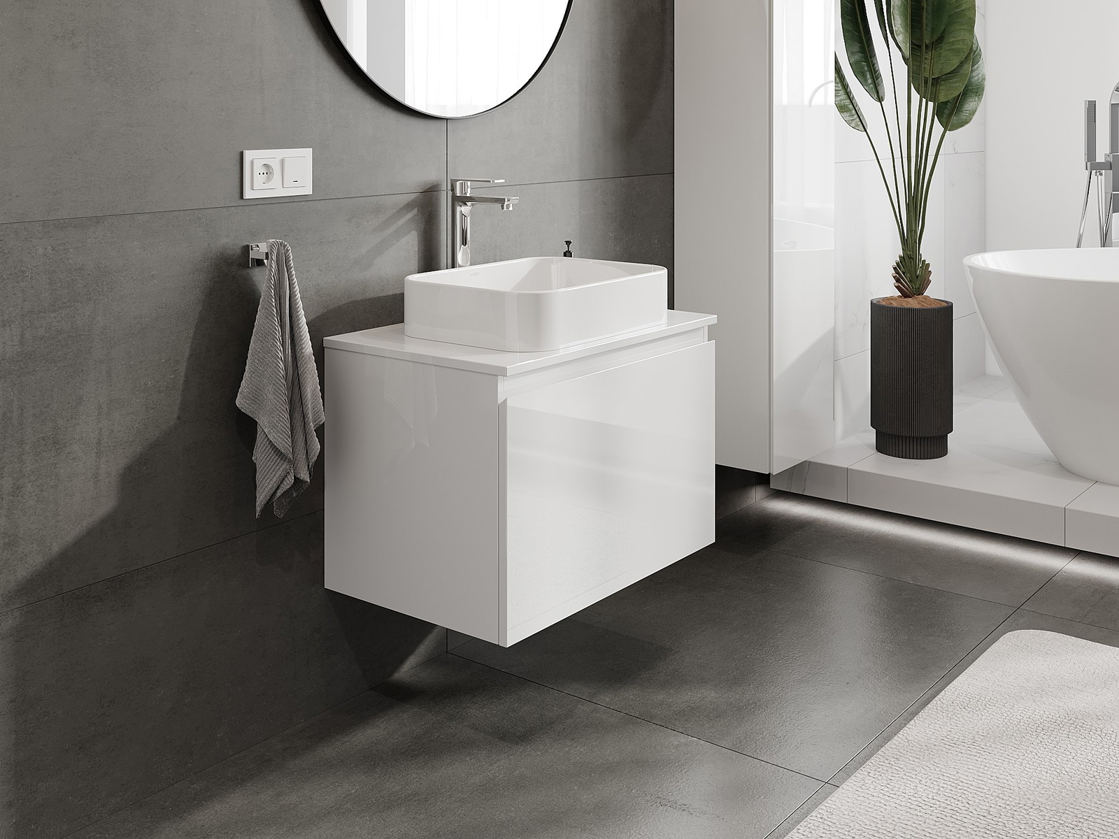 A moduláris fürdőszobabútorainkat különböző színkonfigurációkban lehet kombinálni, lehetővé téve a teljes személyre szabást. Kiválasztható mind az egyes elemek megjelenése, mind pedig funkciói, ami lehetővé teszi a bútorok személyes stílus- és használati preferenciákhoz való igazítását.