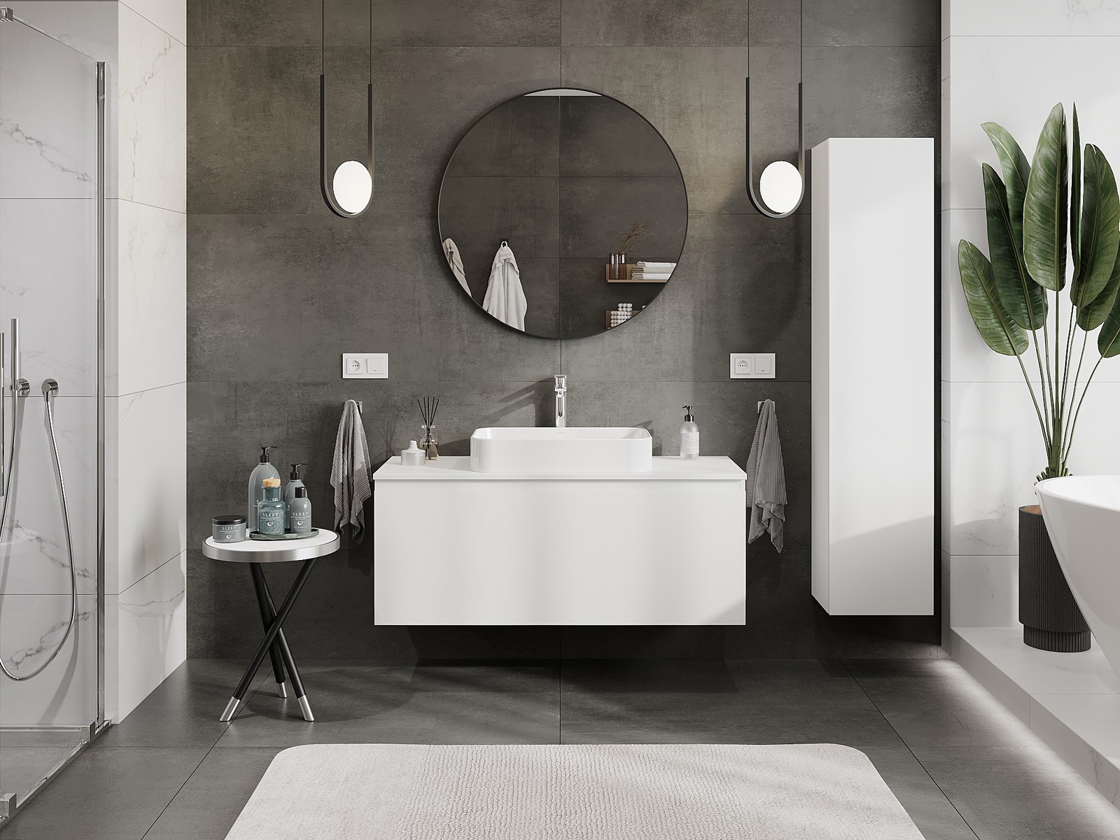 A moduláris fürdőszobabútorainkat különböző színkonfigurációkban lehet kombinálni, lehetővé téve a teljes személyre szabást. Kiválasztható mind az egyes elemek megjelenése, mind pedig funkciói, ami lehetővé teszi a bútorok személyes stílus- és használati preferenciákhoz való igazítását.