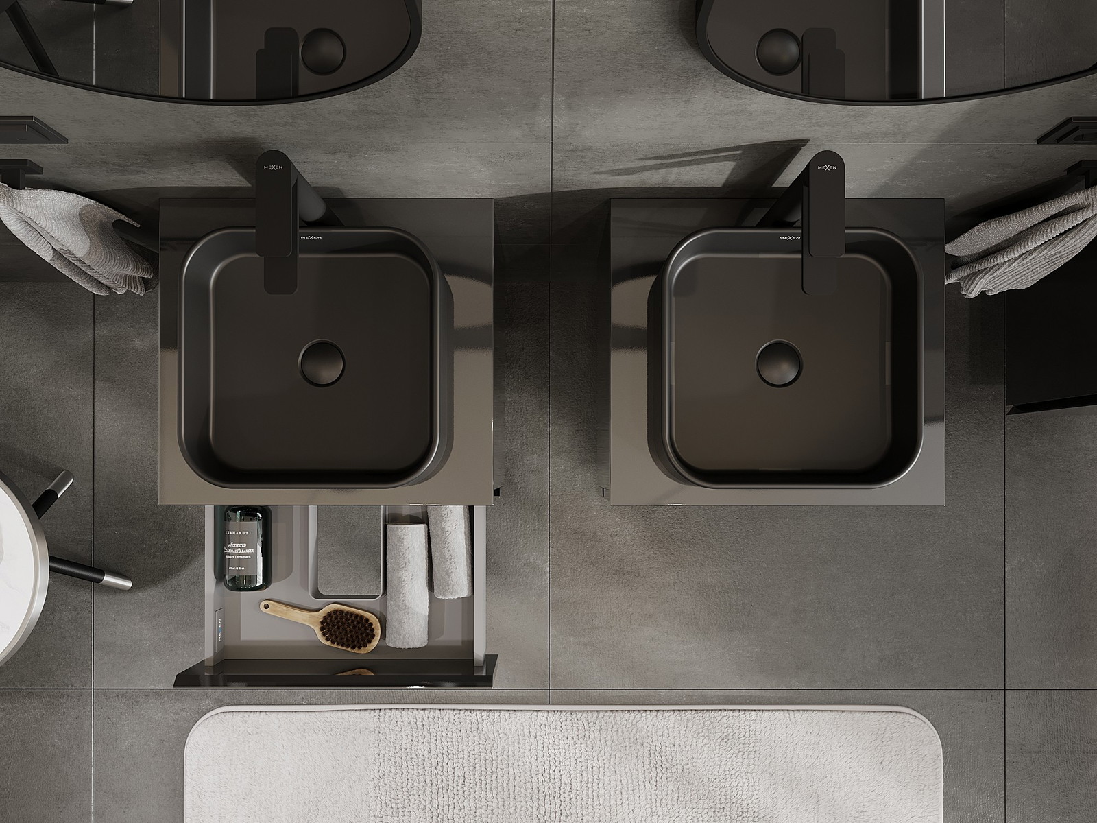 A moduláris fürdőszobabútorainkat különböző színkonfigurációkban lehet kombinálni, lehetővé téve a teljes személyre szabást. Kiválasztható mind az egyes elemek megjelenése, mind pedig funkciói, ami lehetővé teszi a bútorok személyes stílus- és használati preferenciákhoz való igazítását.
