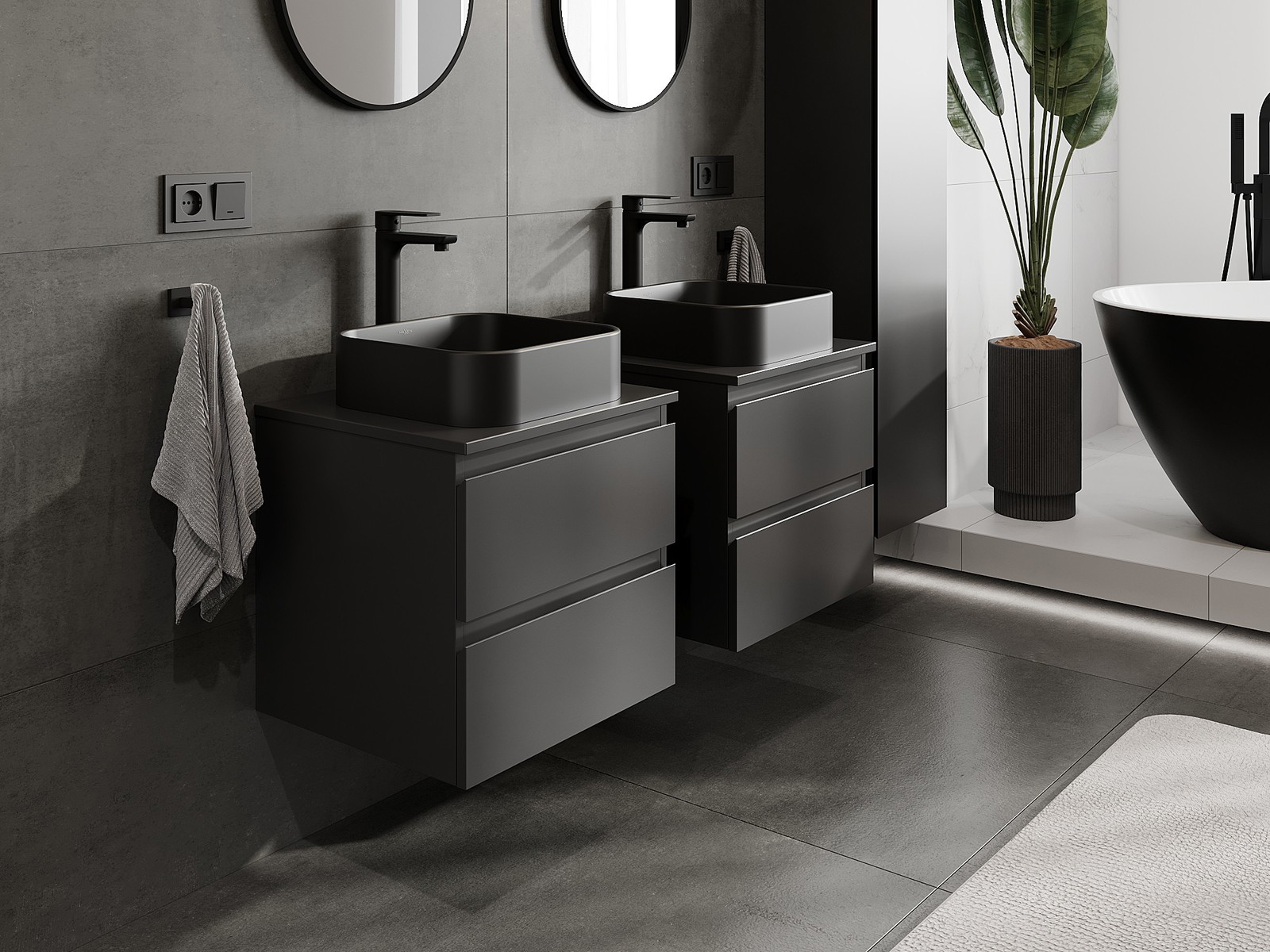 A moduláris fürdőszobabútorainkat különböző színkonfigurációkban lehet kombinálni, lehetővé téve a teljes személyre szabást. Kiválasztható mind az egyes elemek megjelenése, mind pedig funkciói, ami lehetővé teszi a bútorok személyes stílus- és használati preferenciákhoz való igazítását.