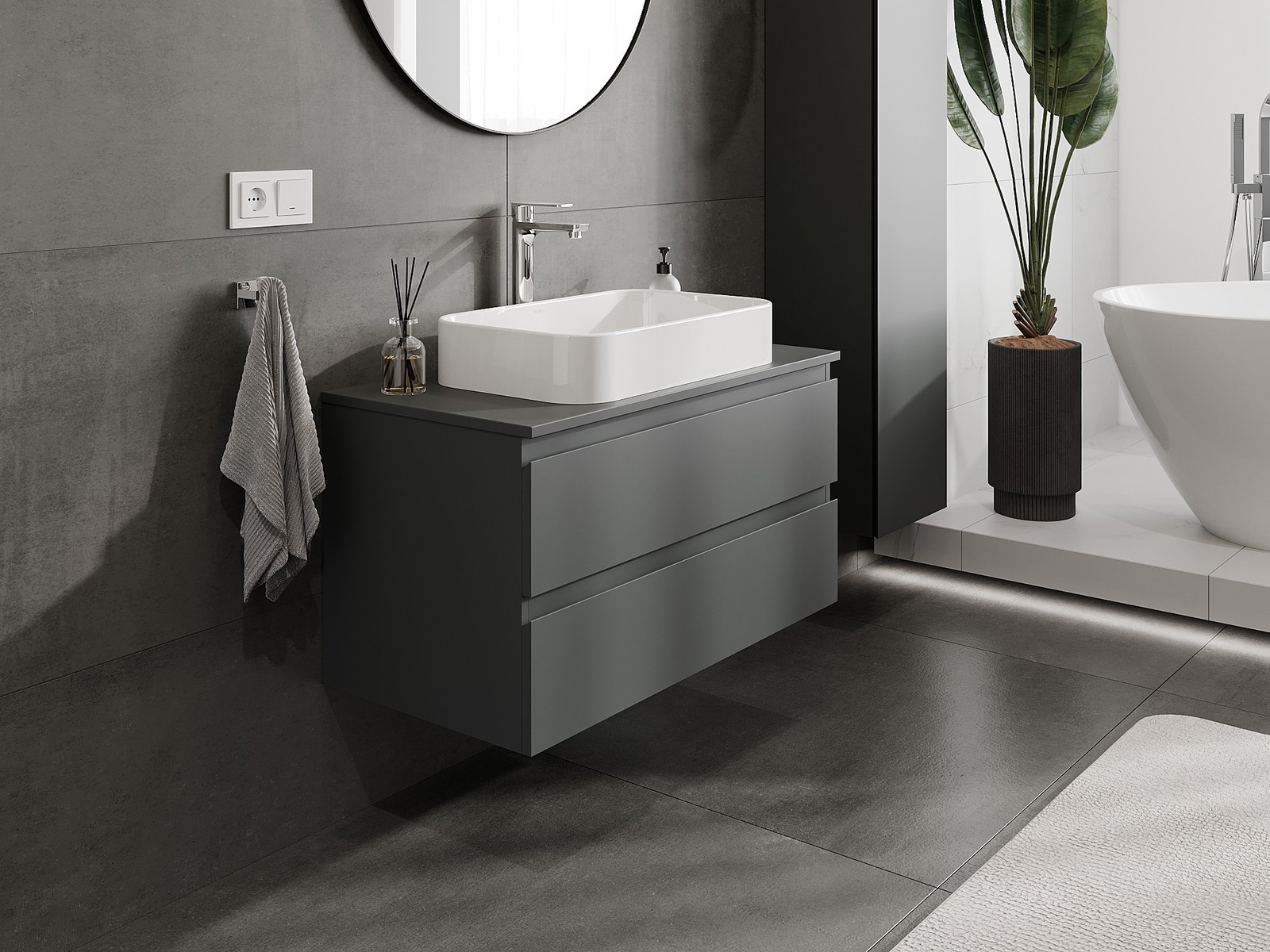 A moduláris fürdőszobabútorainkat különböző színkonfigurációkban lehet kombinálni, lehetővé téve a teljes személyre szabást. Kiválasztható mind az egyes elemek megjelenése, mind pedig funkciói, ami lehetővé teszi a bútorok személyes stílus- és használati preferenciákhoz való igazítását.