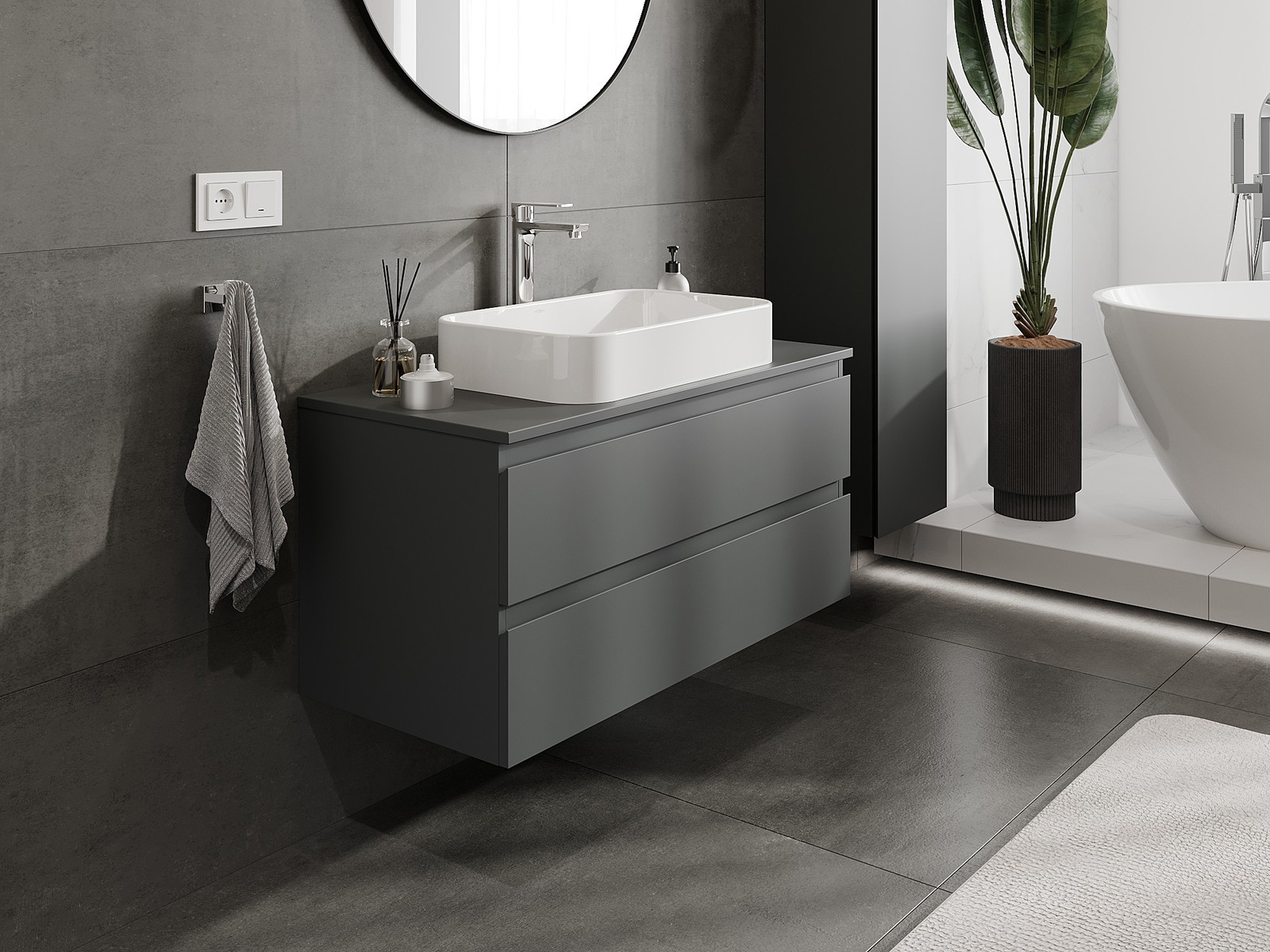 A moduláris fürdőszobabútorainkat különböző színkonfigurációkban lehet kombinálni, lehetővé téve a teljes személyre szabást. Kiválasztható mind az egyes elemek megjelenése, mind pedig funkciói, ami lehetővé teszi a bútorok személyes stílus- és használati preferenciákhoz való igazítását.