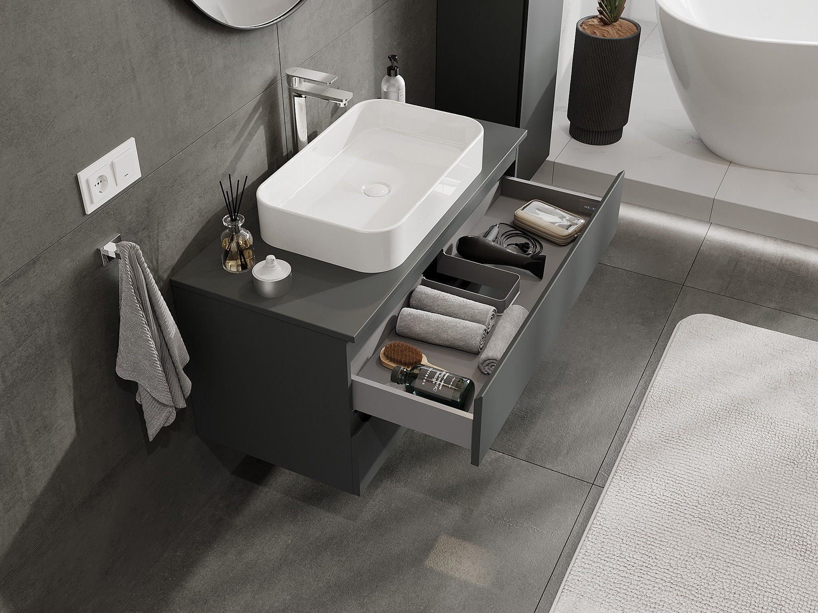 A szilárd anyagoknak, a precíz kivitelnek és a korszerű technológiai megoldásoknak köszönhetően a termék kényelmes használatot, nedvesség- és hőmérséklet-változásokkal szembeni ellenállást, valamint elegáns megjelenést biztosít, amely illeszkedik a különböző fürdőszobai stílusokhoz.