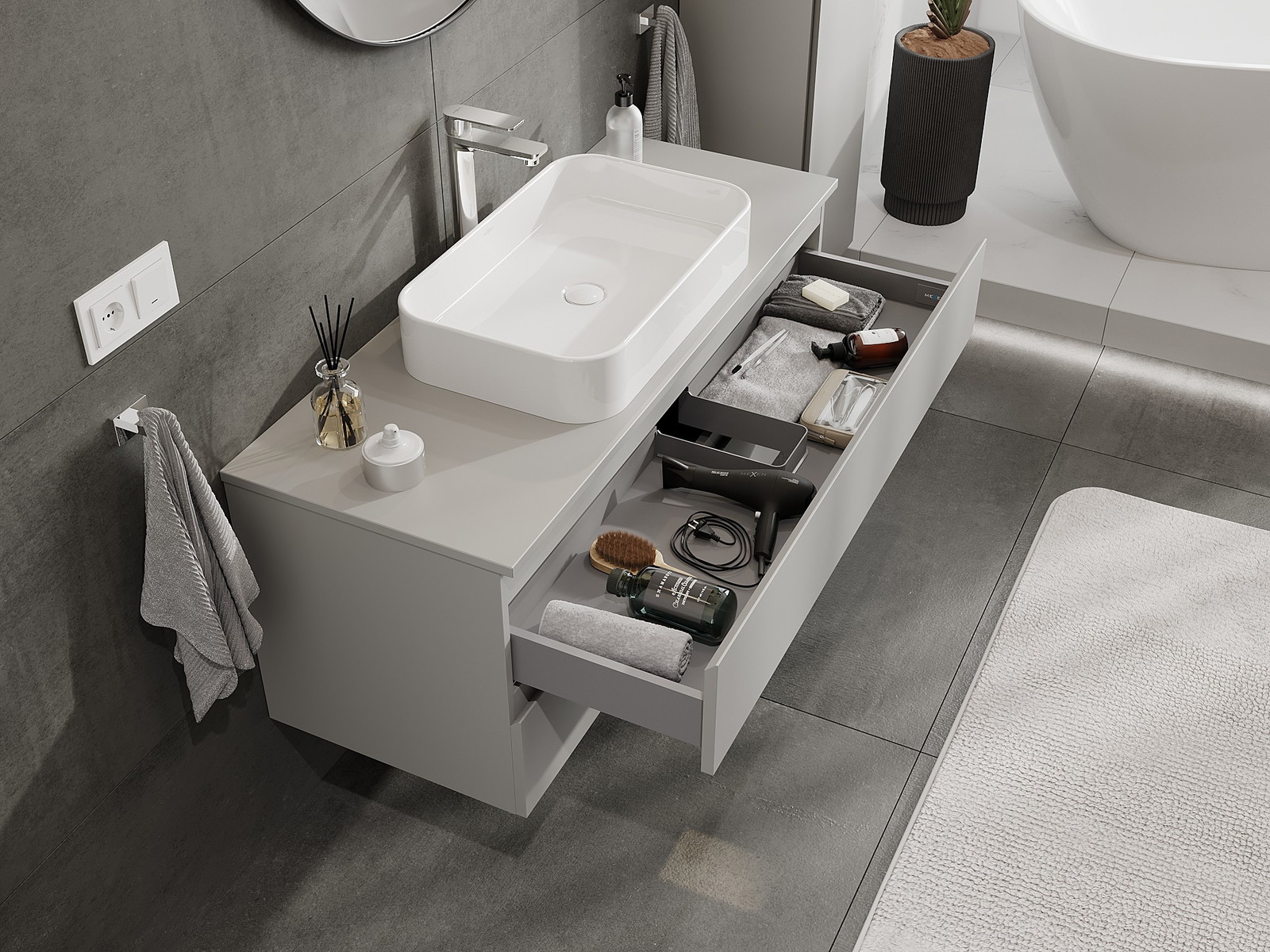 A szilárd anyagoknak, a precíz kivitelnek és a korszerű technológiai megoldásoknak köszönhetően a termék kényelmes használatot, nedvesség- és hőmérséklet-változásokkal szembeni ellenállást, valamint elegáns megjelenést biztosít, amely illeszkedik a különböző fürdőszobai stílusokhoz.