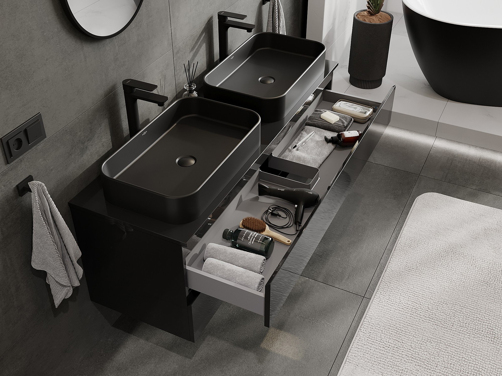 A moduláris fürdőszobabútorainkat különböző színkonfigurációkban lehet kombinálni, lehetővé téve a teljes személyre szabást. Kiválasztható mind az egyes elemek megjelenése, mind pedig funkciói, ami lehetővé teszi a bútorok személyes stílus- és használati preferenciákhoz való igazítását.