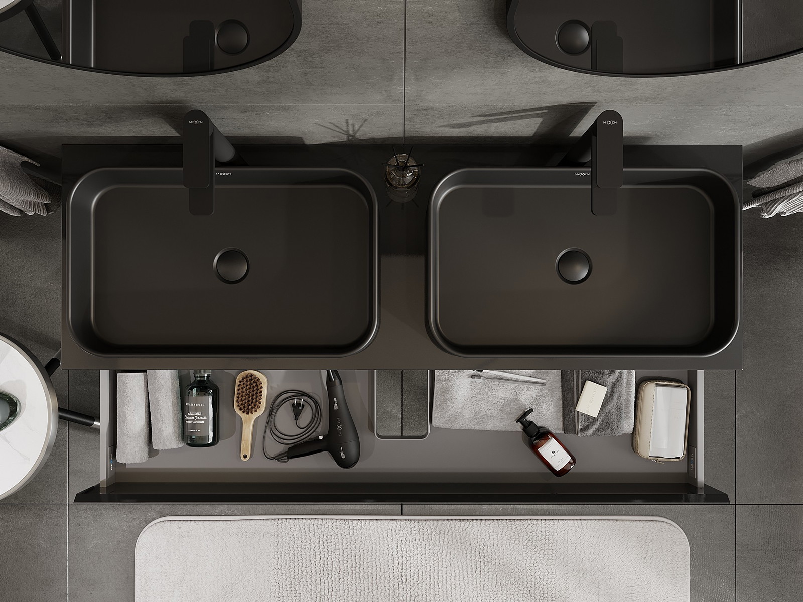A fiókban lévő kivágás úgy van kialakítva, hogy befogadja a mosdó telepítéseknél szükséges szifont. Ennek köszönhetően a bútor teljesen funkcionálisan felszerelhető anélkül, hogy a fiók terének egy részét fel kellene áldozni a telepítés miatt.