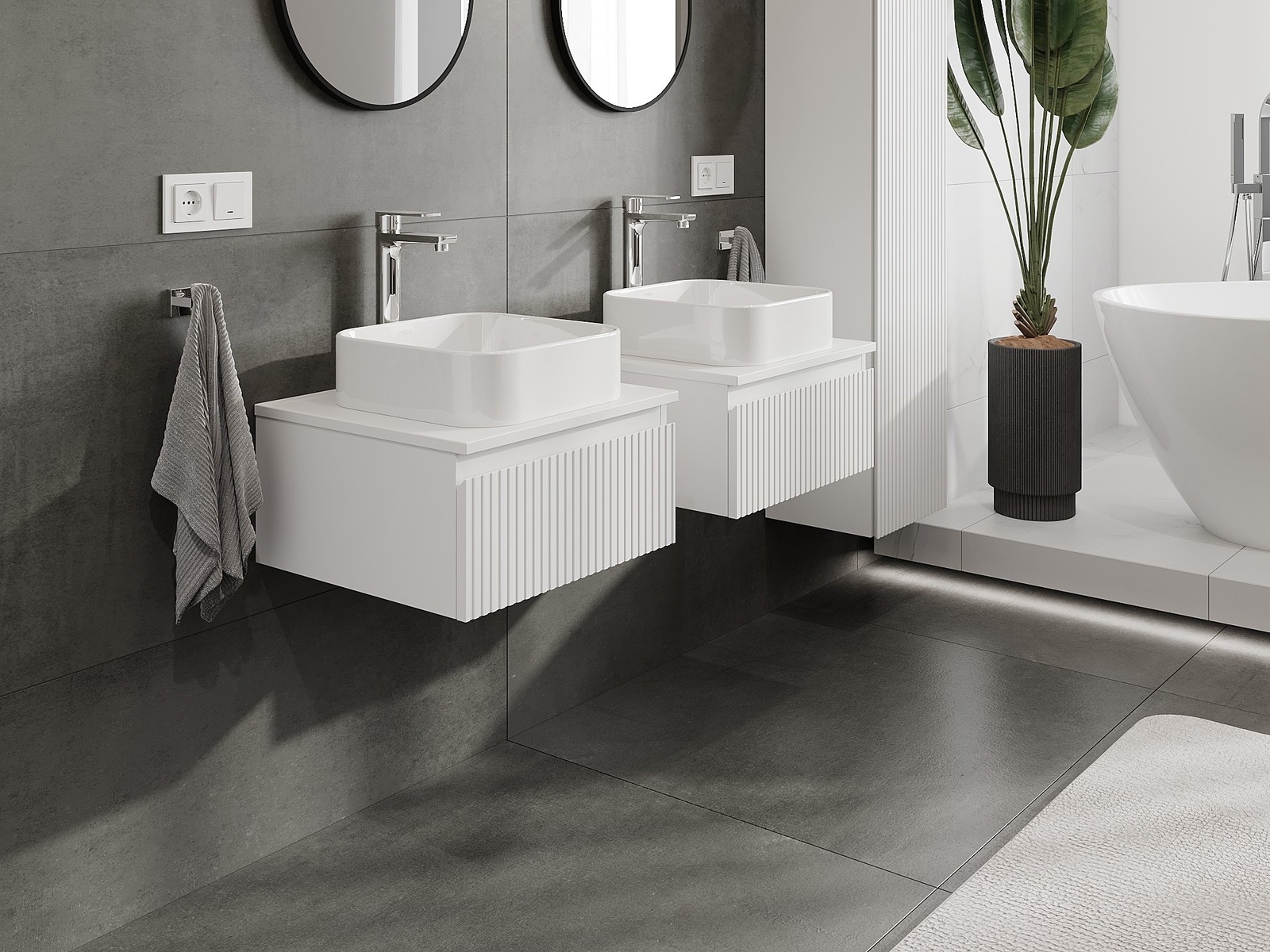 A moduláris fürdőszobabútorainkat különböző színkonfigurációkban lehet kombinálni, lehetővé téve a teljes személyre szabást. Kiválasztható mind az egyes elemek megjelenése, mind pedig funkciói, ami lehetővé teszi a bútorok személyes stílus- és használati preferenciákhoz való igazítását.