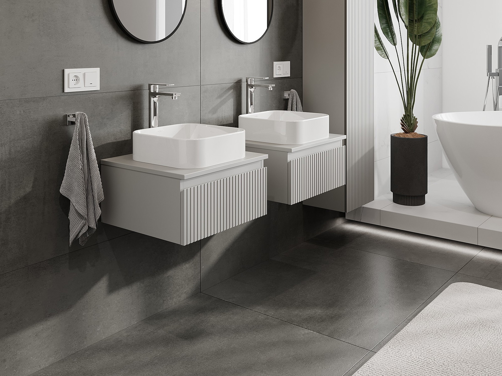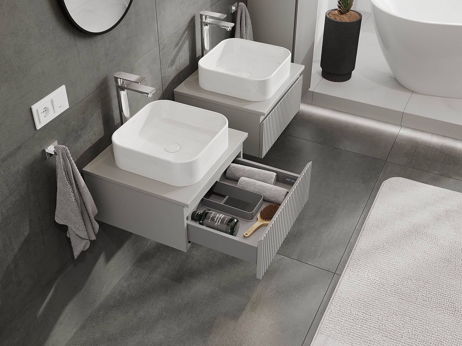 Mexen Rivel fürdőszobai szekrény mosdó alá 50 cm-es lappal, 1 fiók, bordázott, szürke matt - 91A20-05023-1-BFC62