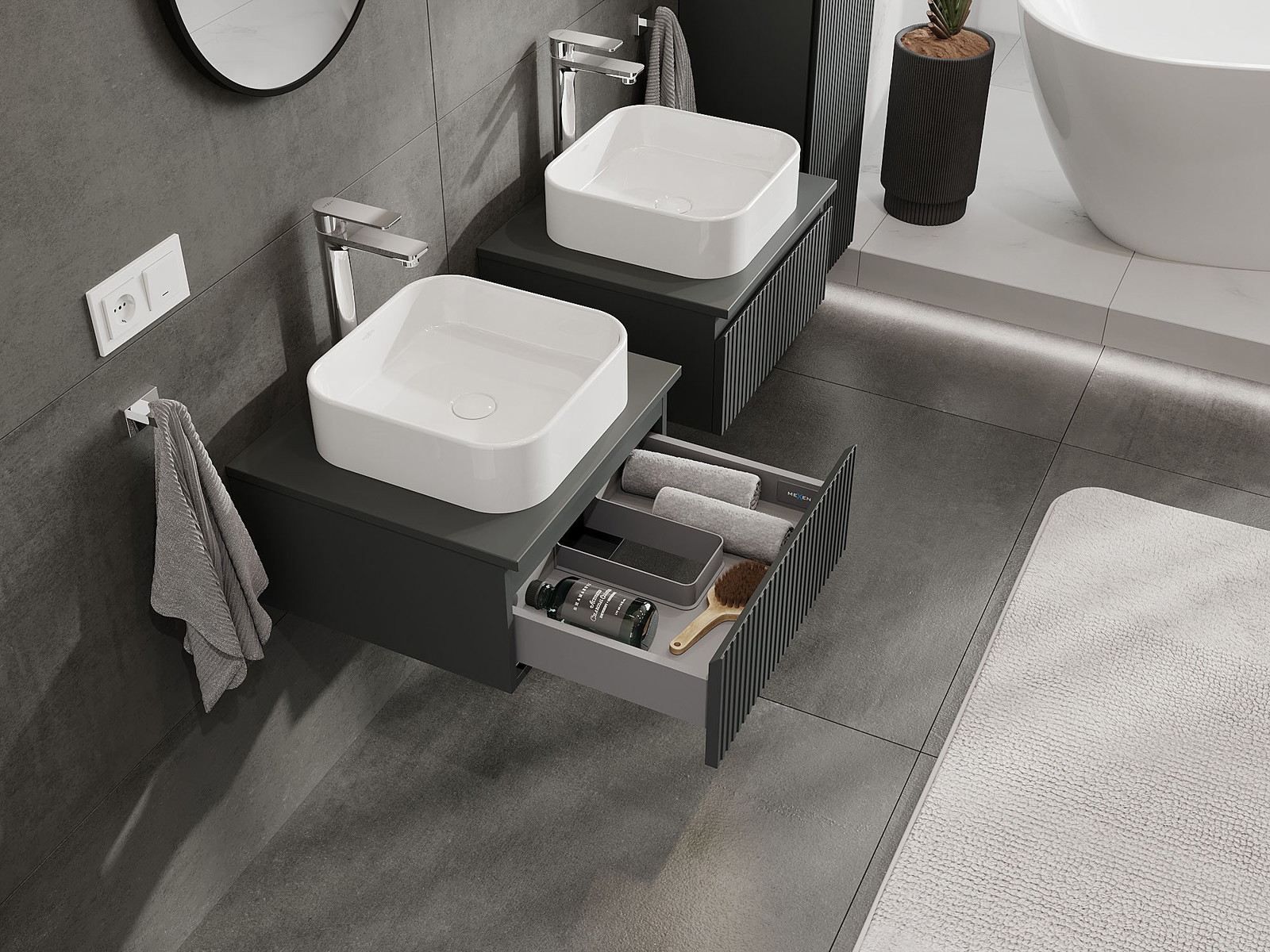 Mexen Rivel fürdőszobai szekrény mosdó alá 50 cm, asztallappal, 1 fiók, bordázott, matt grafit - 91A20-05023-1-BFC66