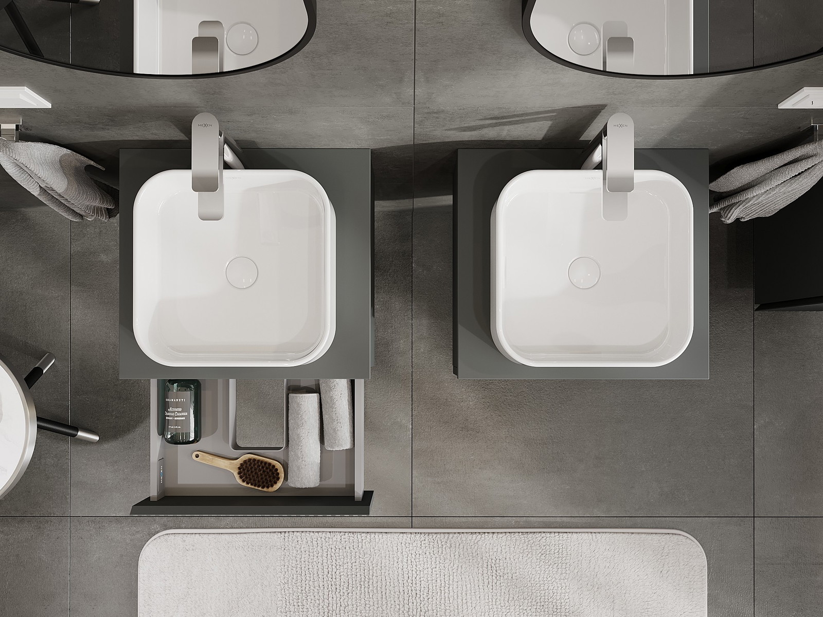 A moduláris fürdőszobabútorainkat különböző színkonfigurációkban lehet kombinálni, lehetővé téve a teljes személyre szabást. Kiválasztható mind az egyes elemek megjelenése, mind pedig funkciói, ami lehetővé teszi a bútorok személyes stílus- és használati preferenciákhoz való igazítását.