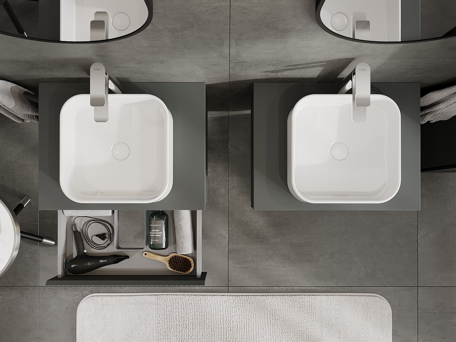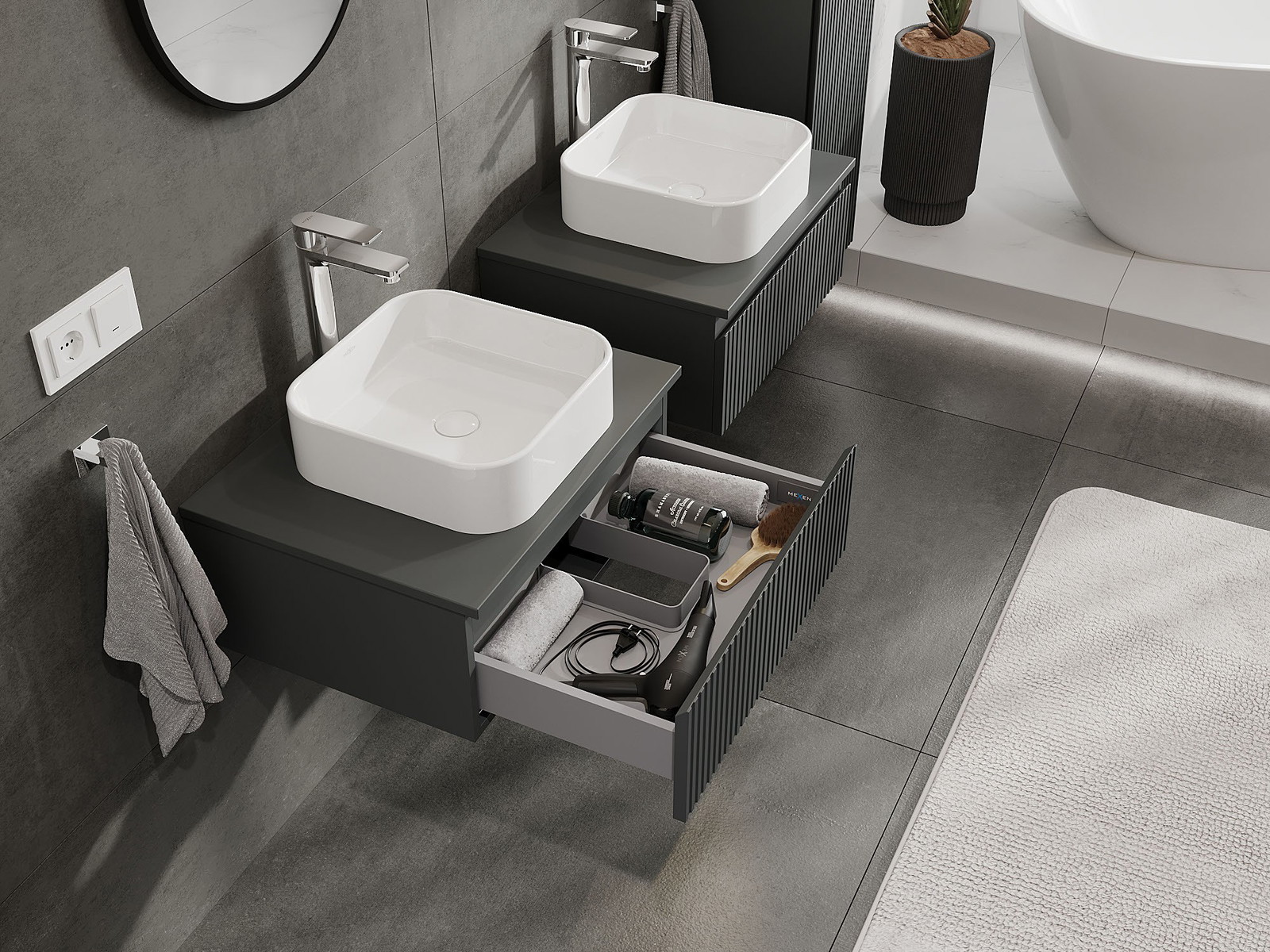 Mexen Rivel fürdőszobai szekrény 60 cm-es mosdó alatti, lappal, 1 fiók, bordázott, grafit matt - 91A20-06023-1-BFC66