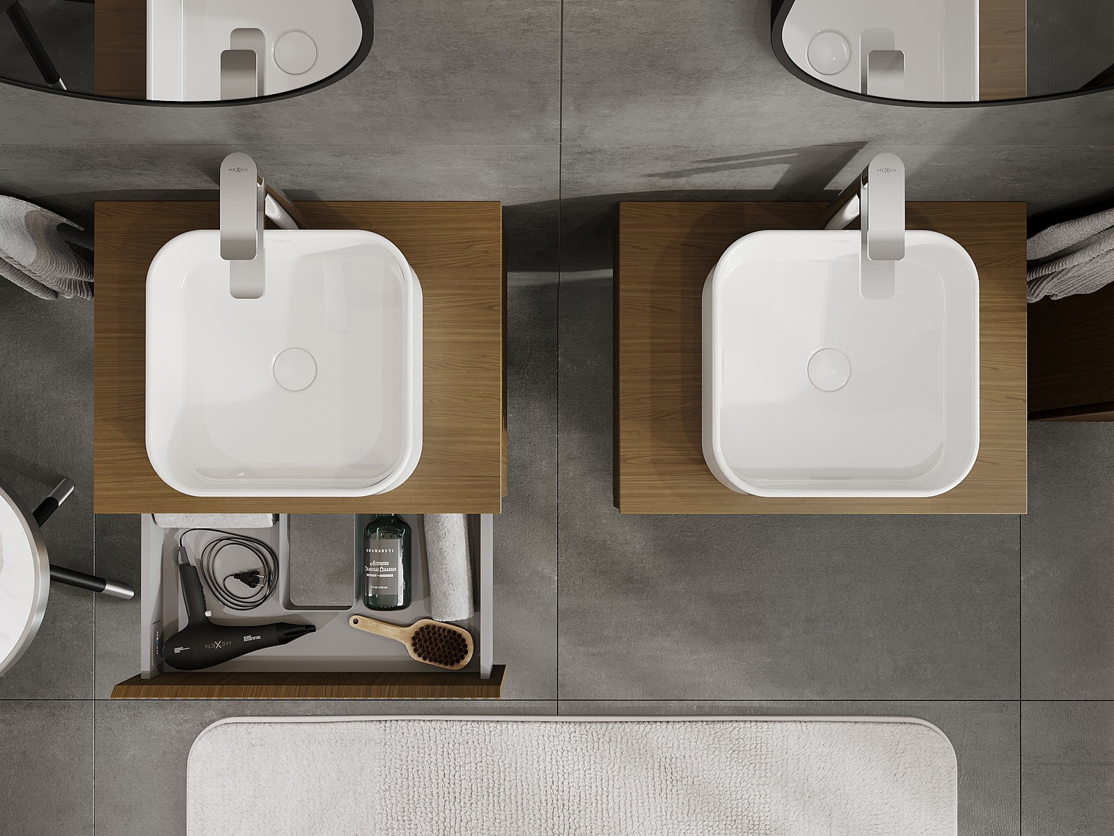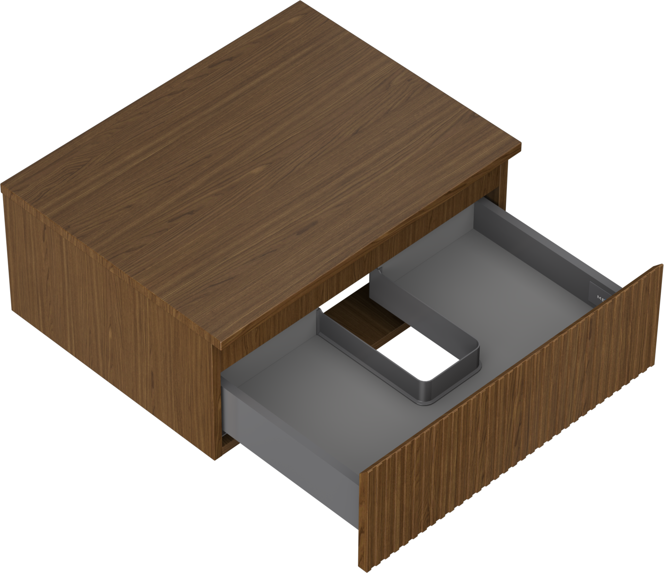 A fiókban lévő kivágás úgy van kialakítva, hogy befogadja a mosdó telepítéseknél szükséges szifont. Ennek köszönhetően a bútor teljesen funkcionálisan felszerelhető anélkül, hogy a fiók terének egy részét fel kellene áldozni a telepítés miatt.