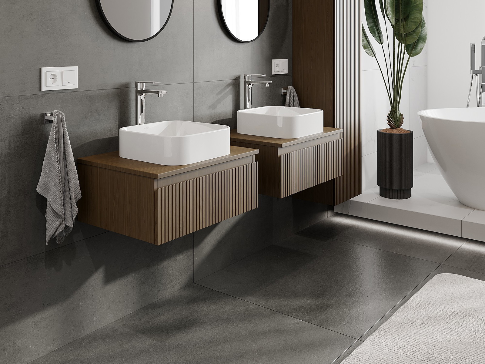 Mexen Rivel fürdőszobai szekrény mosdó alá 60 cm-es lappal, 1 fiók, barázdált, dió - 91A20-06023-1-BFC86
