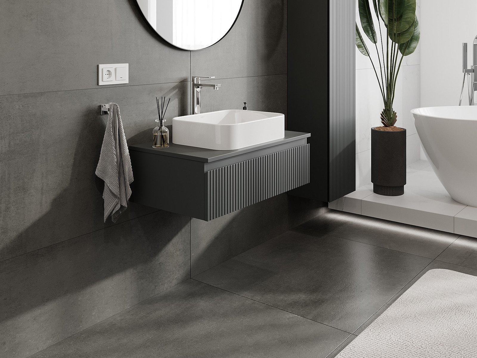 A magas minőségű lakkal bevont lemez kiváló választás a fürdőszobába, elegáns megjelenést biztosít, valamint nagy ellenállást a nedvesség és karcolások hatásának. A magas minőségű lakk védi a munkalap felületét, biztosítva annak hosszú távú tartósságát, esztétikumát és könnyű karbantartását.