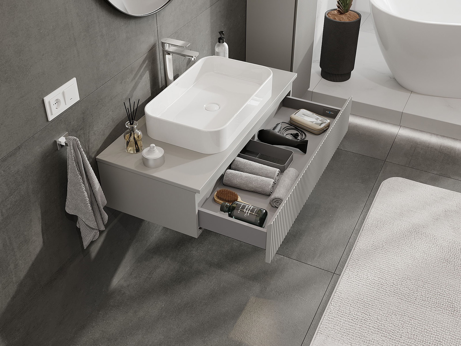 A szilárd anyagoknak, a precíz kivitelnek és a korszerű technológiai megoldásoknak köszönhetően a termék kényelmes használatot, nedvesség- és hőmérséklet-változásokkal szembeni ellenállást, valamint elegáns megjelenést biztosít, amely illeszkedik a különböző fürdőszobai stílusokhoz.