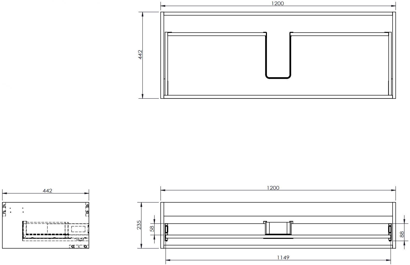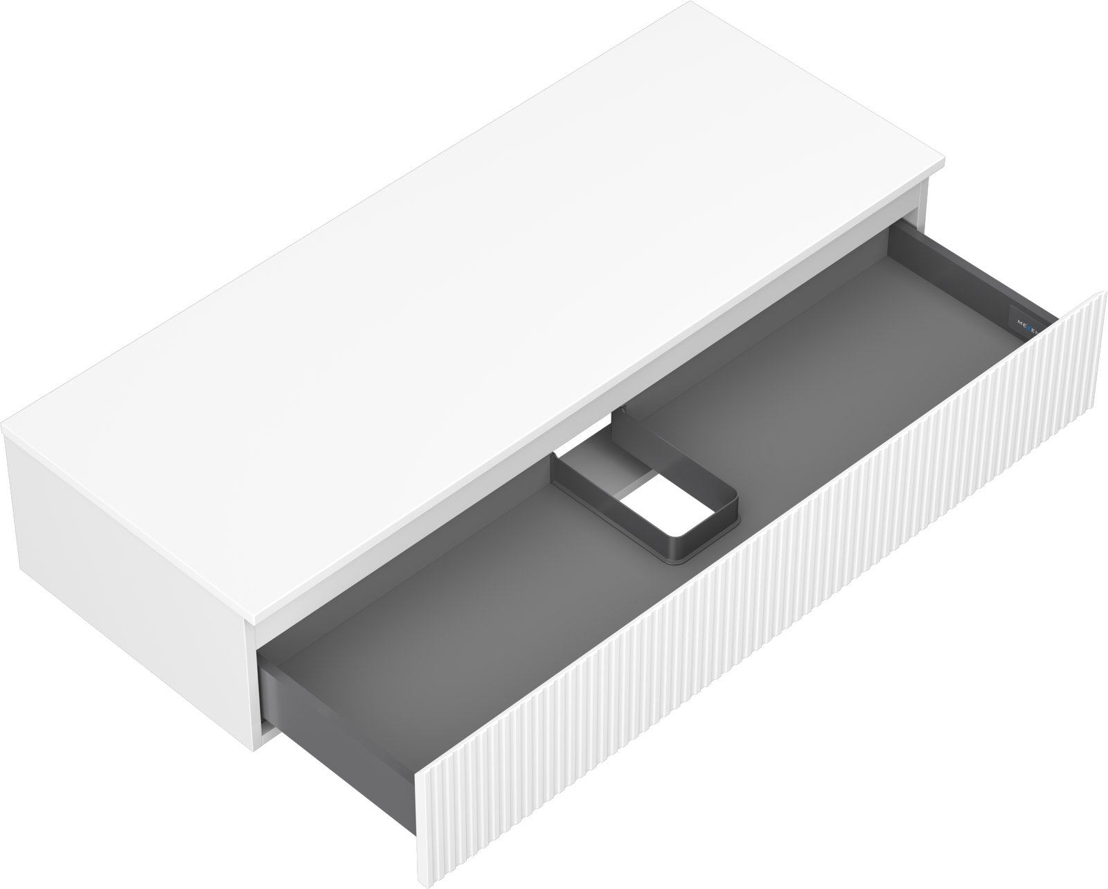 A fiókban lévő kivágás úgy van kialakítva, hogy befogadja a mosdó telepítéseknél szükséges szifont. Ennek köszönhetően a bútor teljesen funkcionálisan felszerelhető anélkül, hogy a fiók terének egy részét fel kellene áldozni a telepítés miatt.