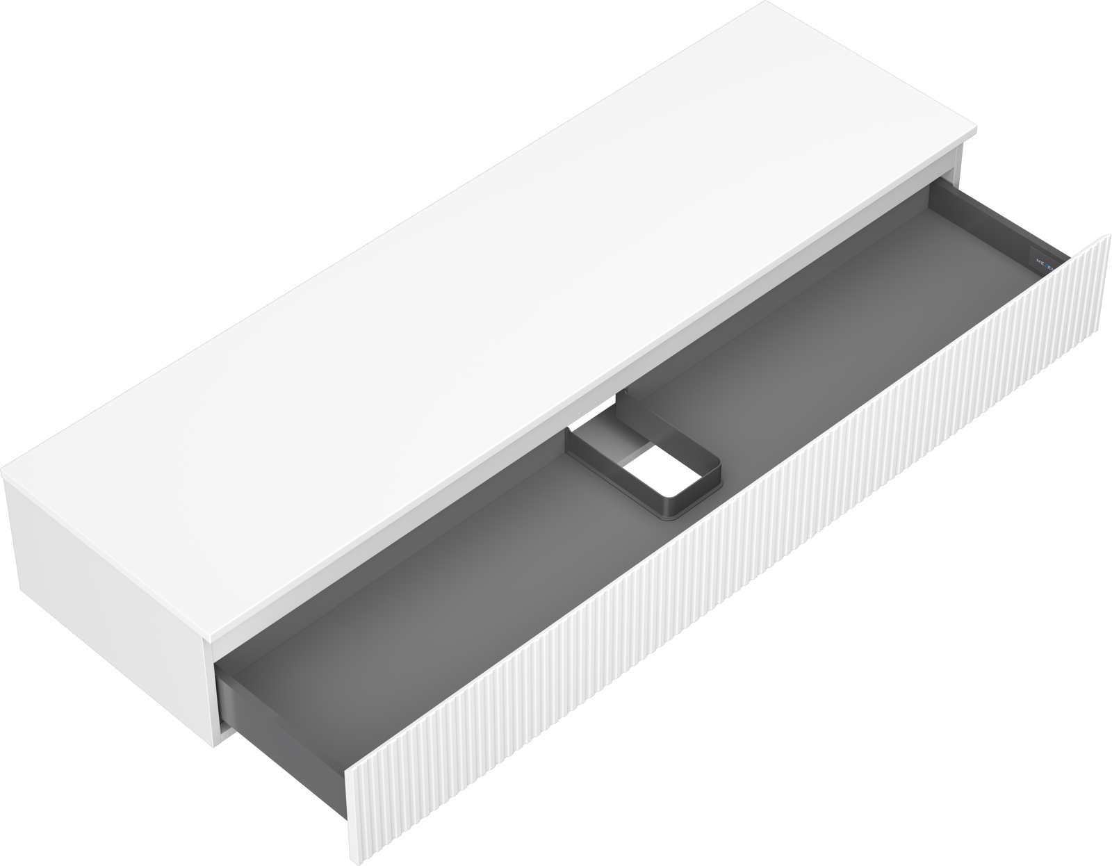 Mexen Rivel 160 cm-es mosdó alatti fürdőszobaszekrény munkalappal, 1 fiók, bordázott, matt fehér - 91A20-16023-1-BFC01