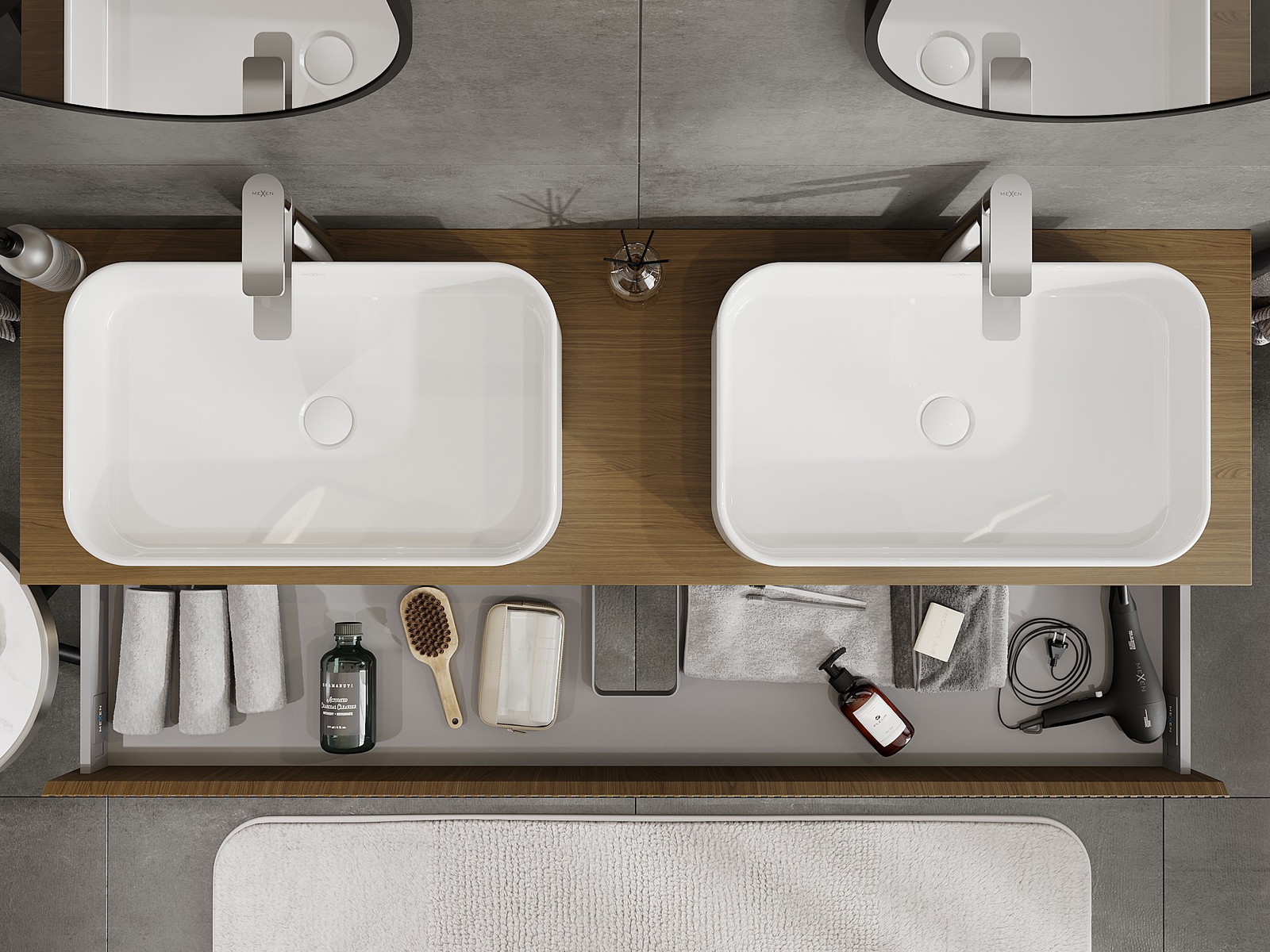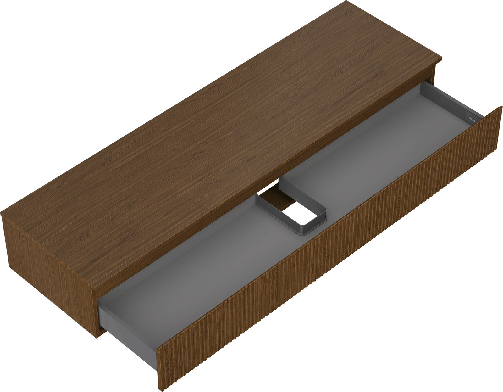 A fiókban lévő kivágás úgy van kialakítva, hogy befogadja a mosdó telepítéseknél szükséges szifont. Ennek köszönhetően a bútor teljesen funkcionálisan felszerelhető anélkül, hogy a fiók terének egy részét fel kellene áldozni a telepítés miatt.